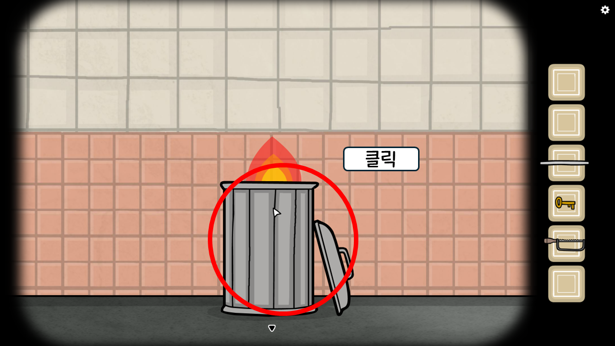 불이 붙은 쓰래기통을 한번 더 클릭해줍니다.