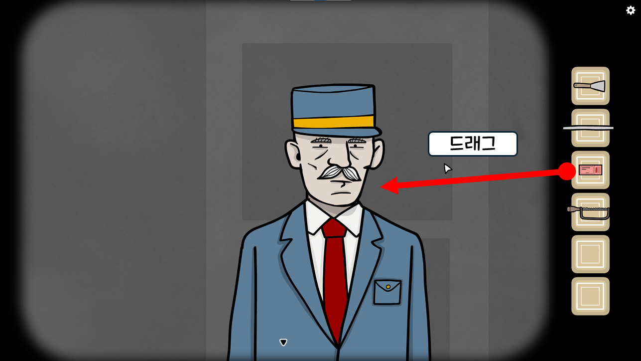 손을잡고 오른쪽으로 드래그 하면 역무원이 지하철 표에 펀칭을 합니다.