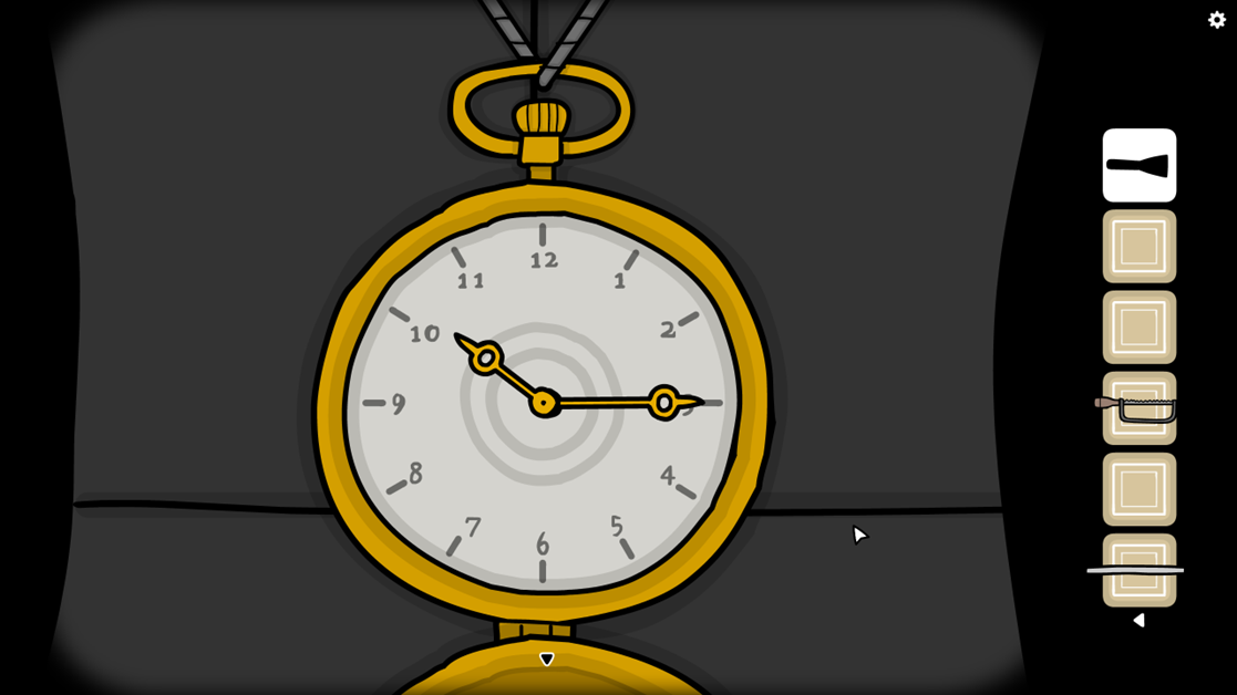 그럼 회중시계가 열리며 10시 15분을 가르키게 됩니다. 이걸 기억하고 뒤로 돌아갑니다.