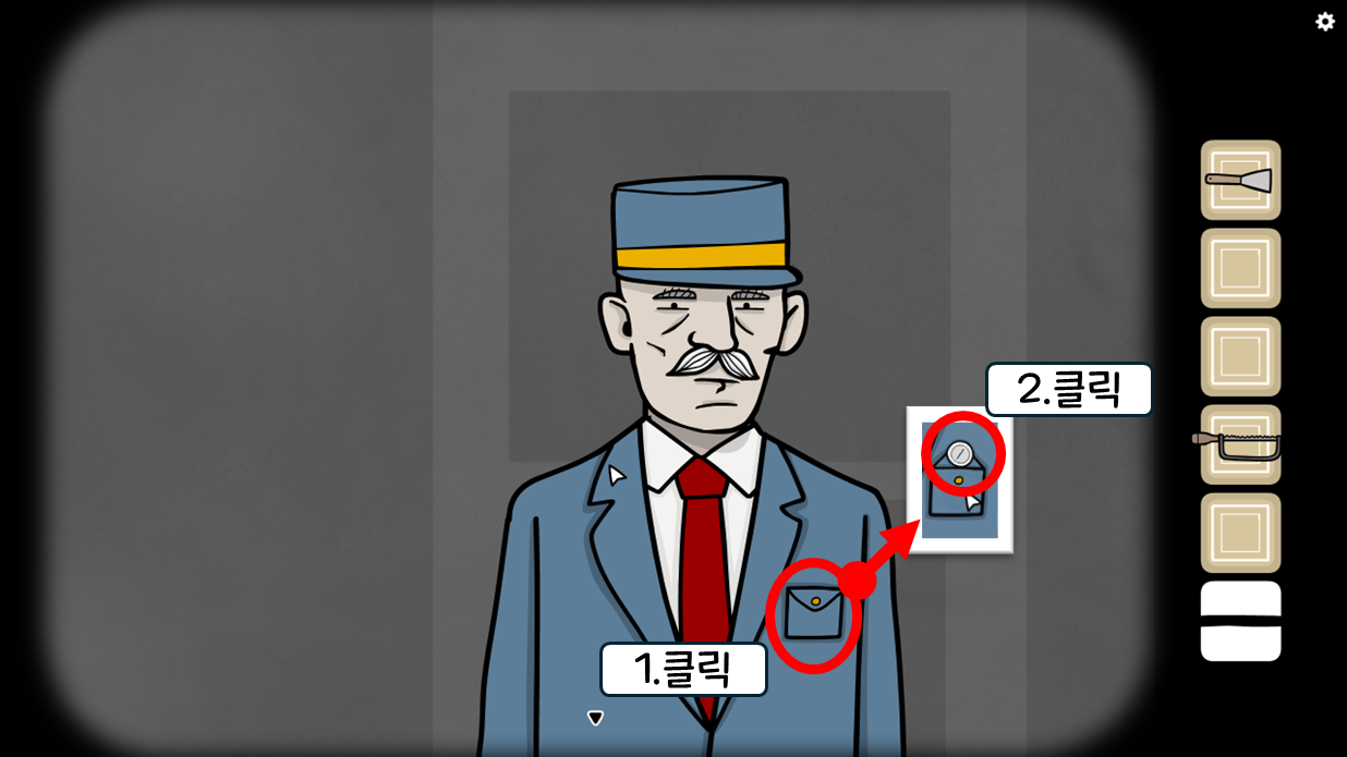 역무원의 왼쪽 자켓 주머니를 클릭하면 동전이 튀어나오니 클릭해서 얻어줍니다.