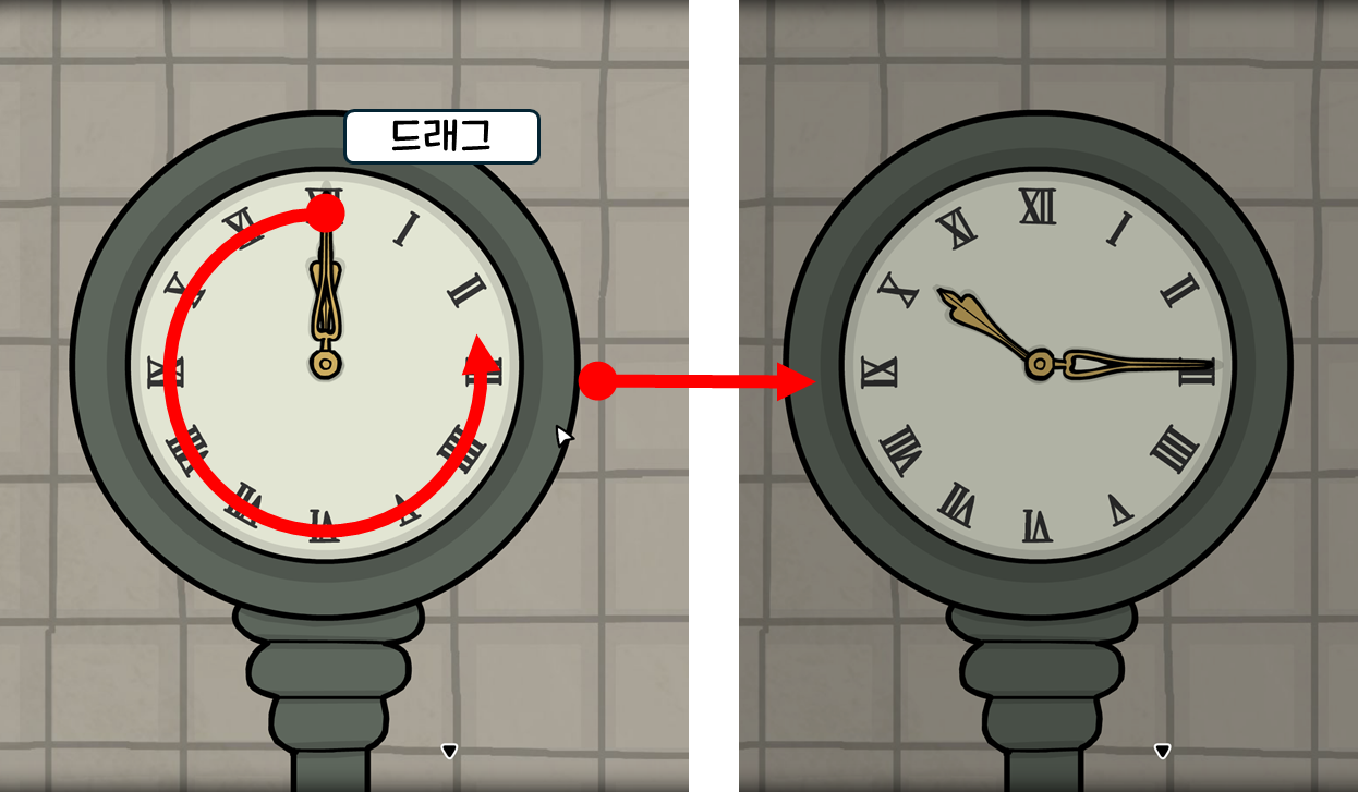 시계가 확대가 되면 분침을 잡고 반시계방향으로 돌려 시간이 10시 15분이 되게 만들어줍니다.