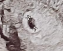 여기 보이는 콩알만한게 아기집 인데요, 크기가 0.52cm로 1cm도 안되게 엄청 작죠, 밑에 GA 를 보면 5주2일 정도의 크기라고 크기를 통해 임신주차를 계산도 해준답니다.