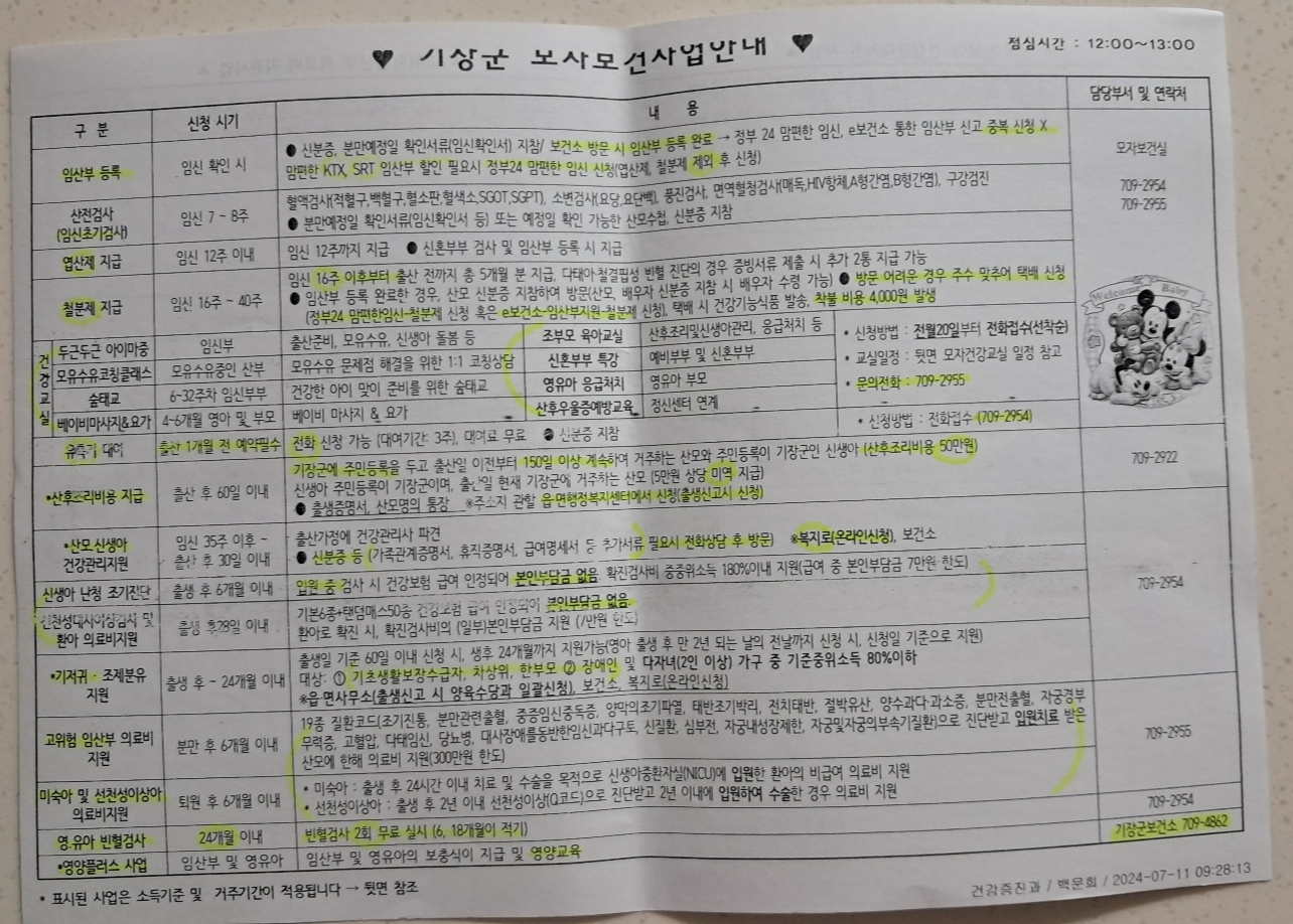 마지막으로 보건소에서 기장군에서 시행하는 모자보건사업안내 종이를 줬는데 벌써부터 머리가 아파오죠..?