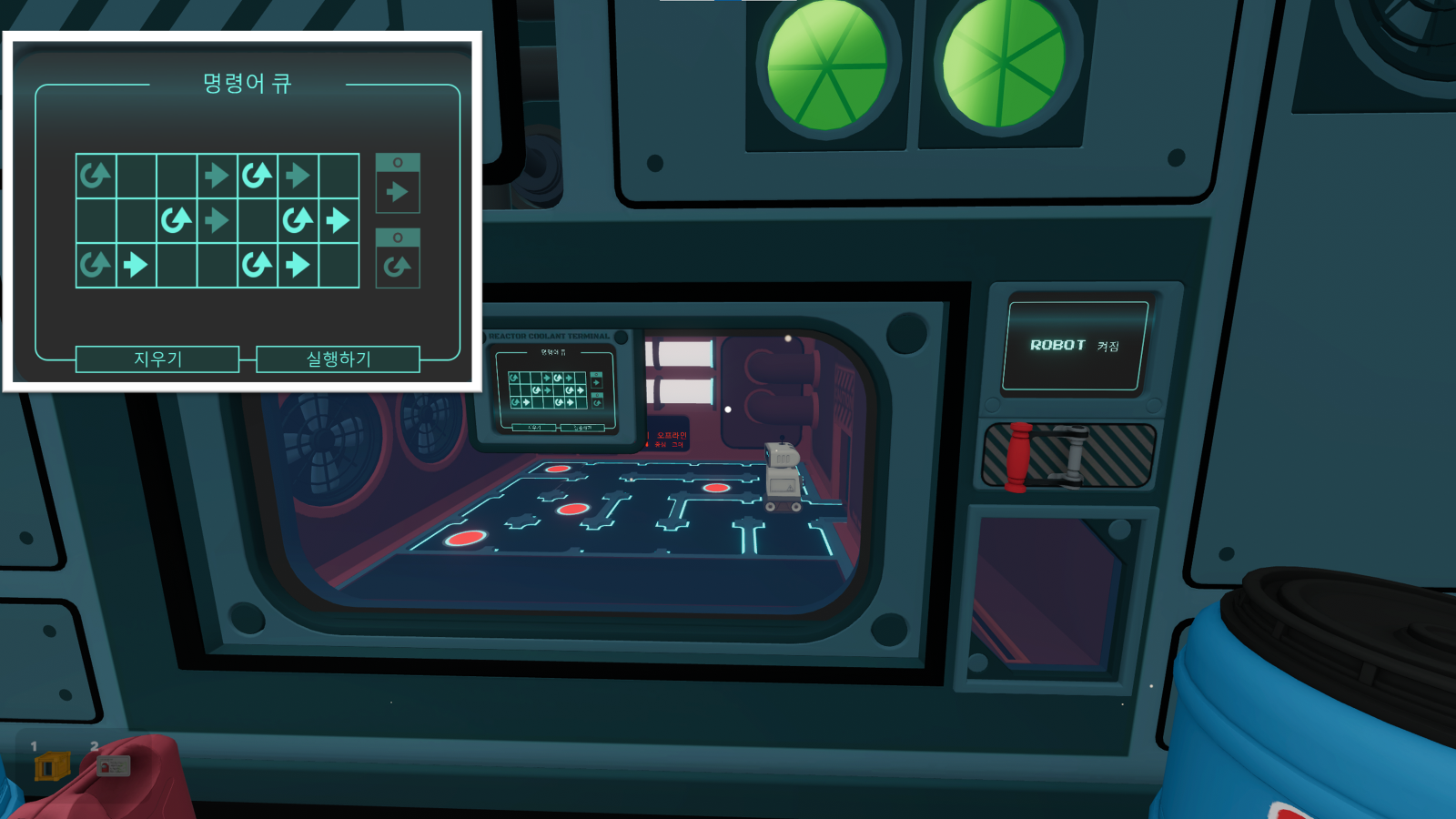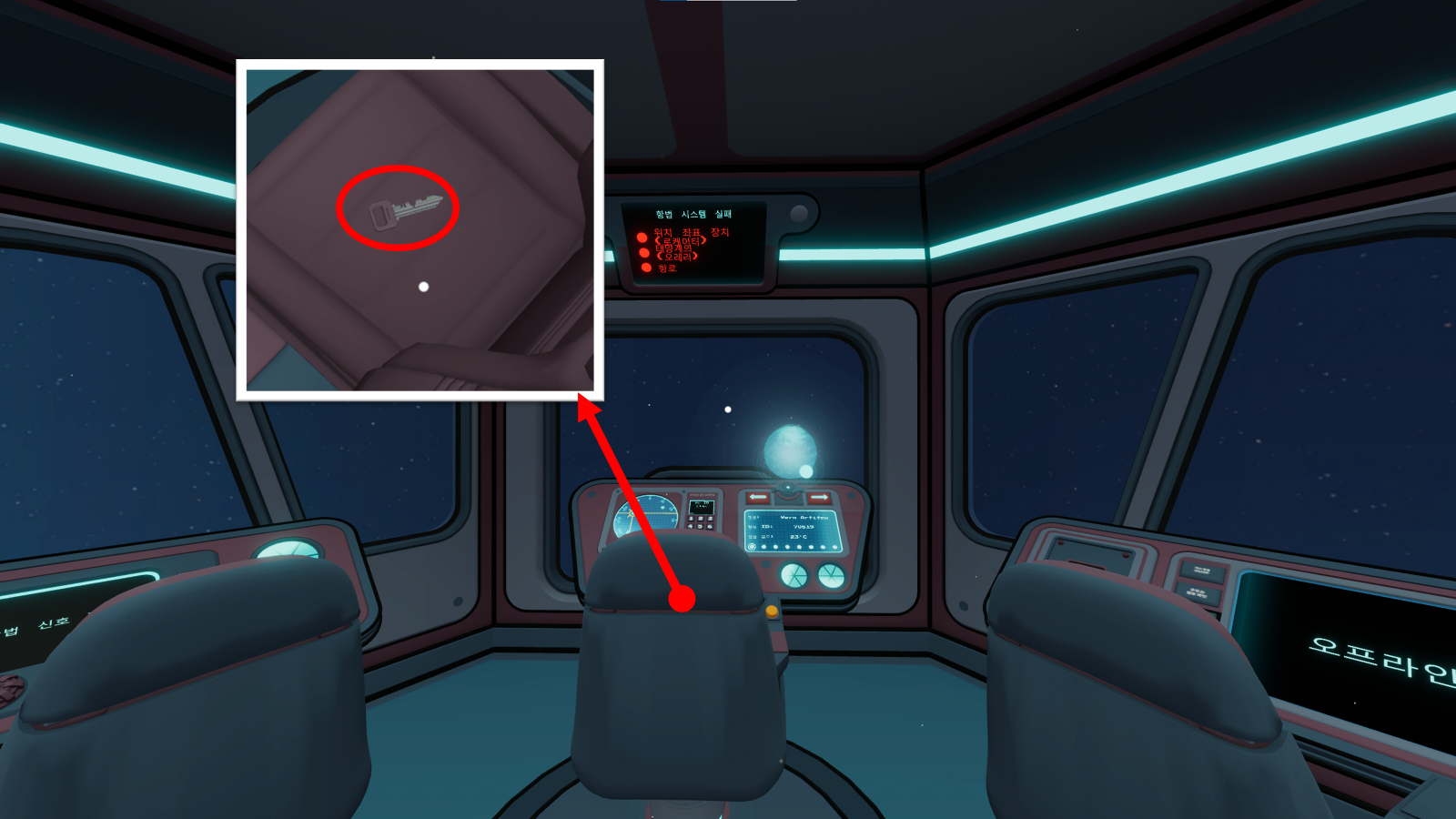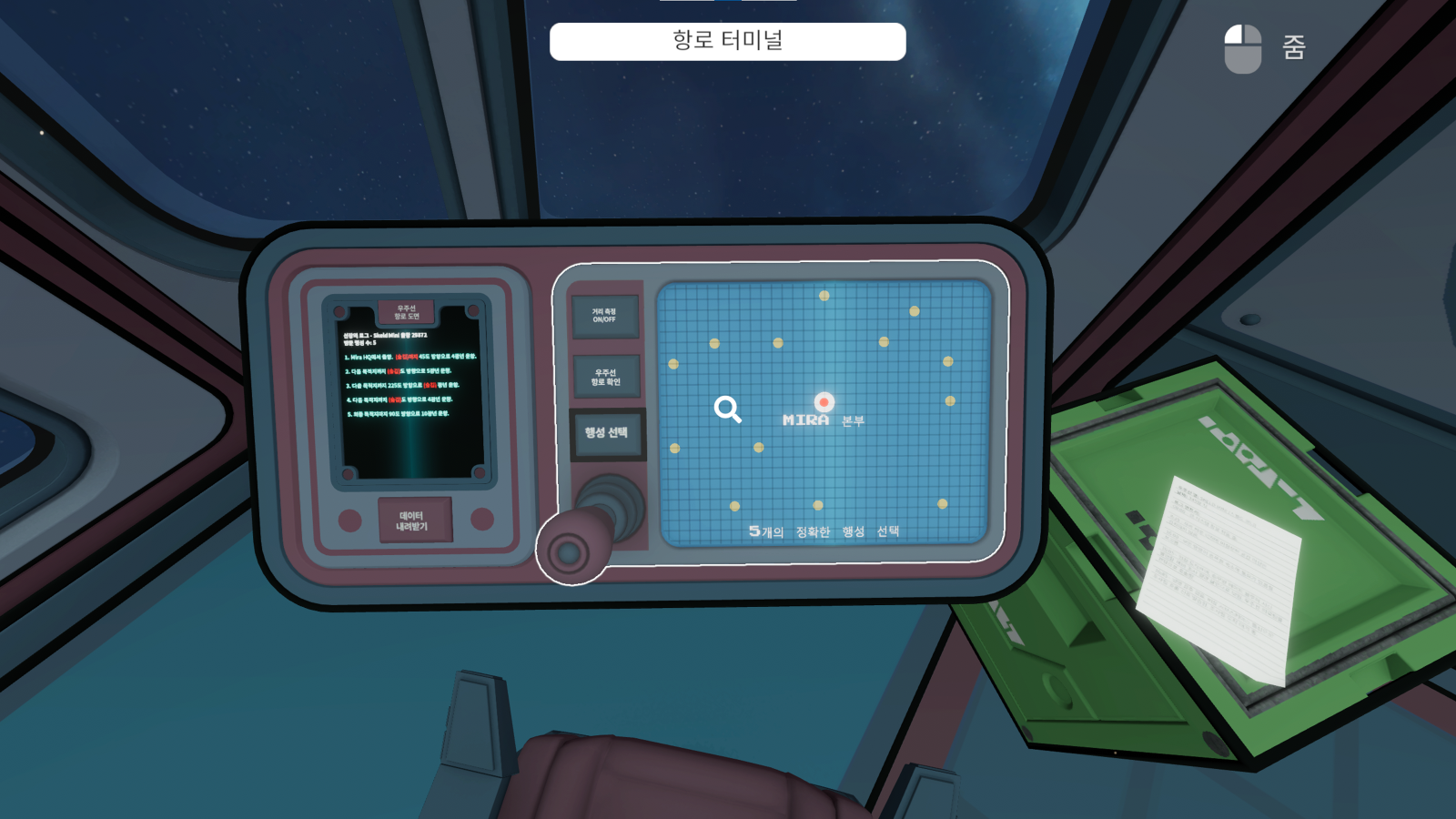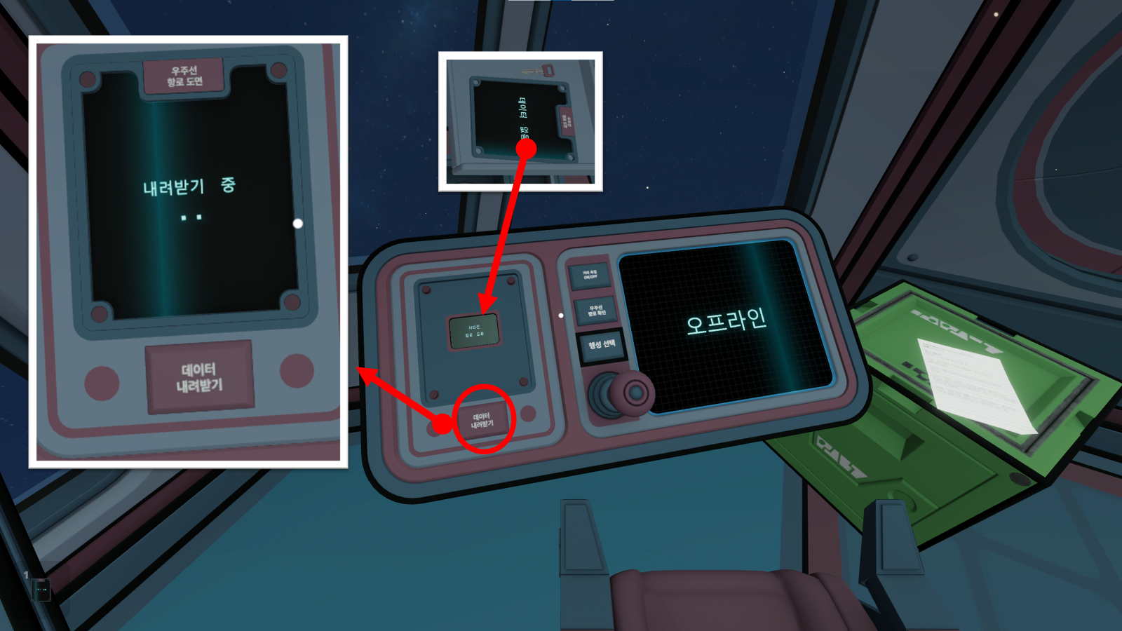 이제 아까 얻은 우주선 항로도면을 오른쪽 조종석에다가 꼽아주고 데이터 내려받기를 누릅니다.