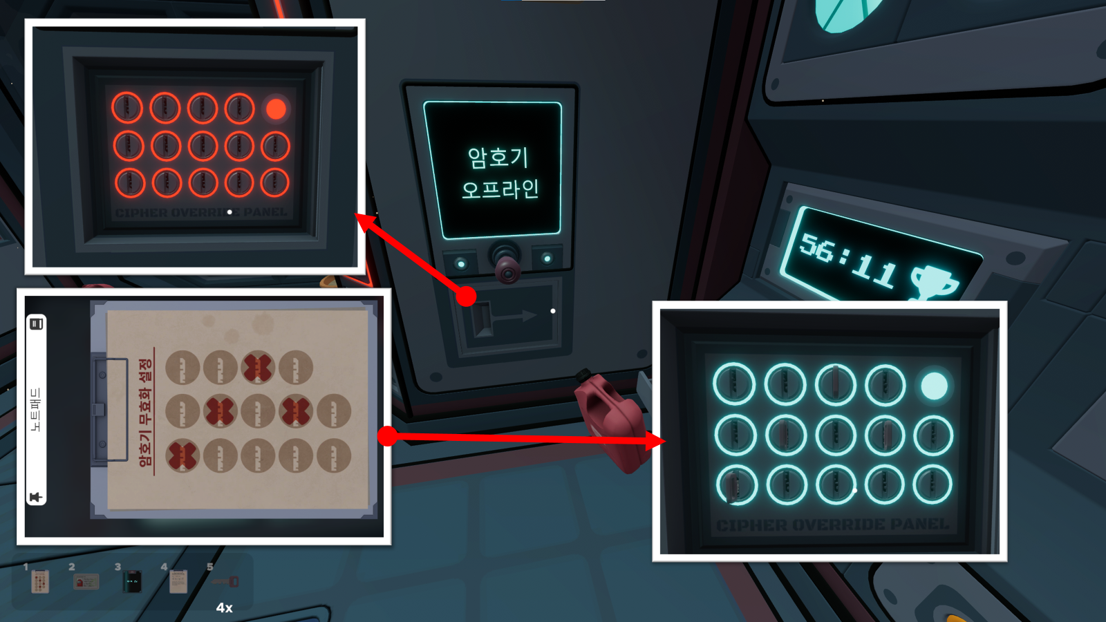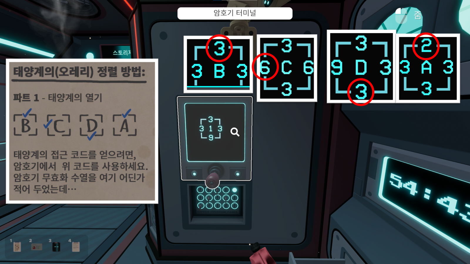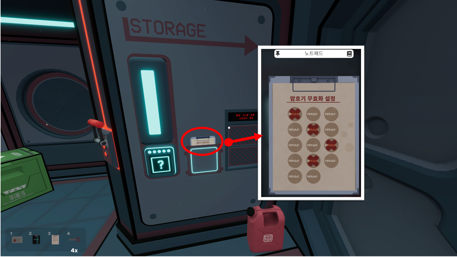 암호기로 와서 밑에 문 열고 키를 노트패드에 적힌대로 꼽아주면 암호기가 활성화 됩니다.