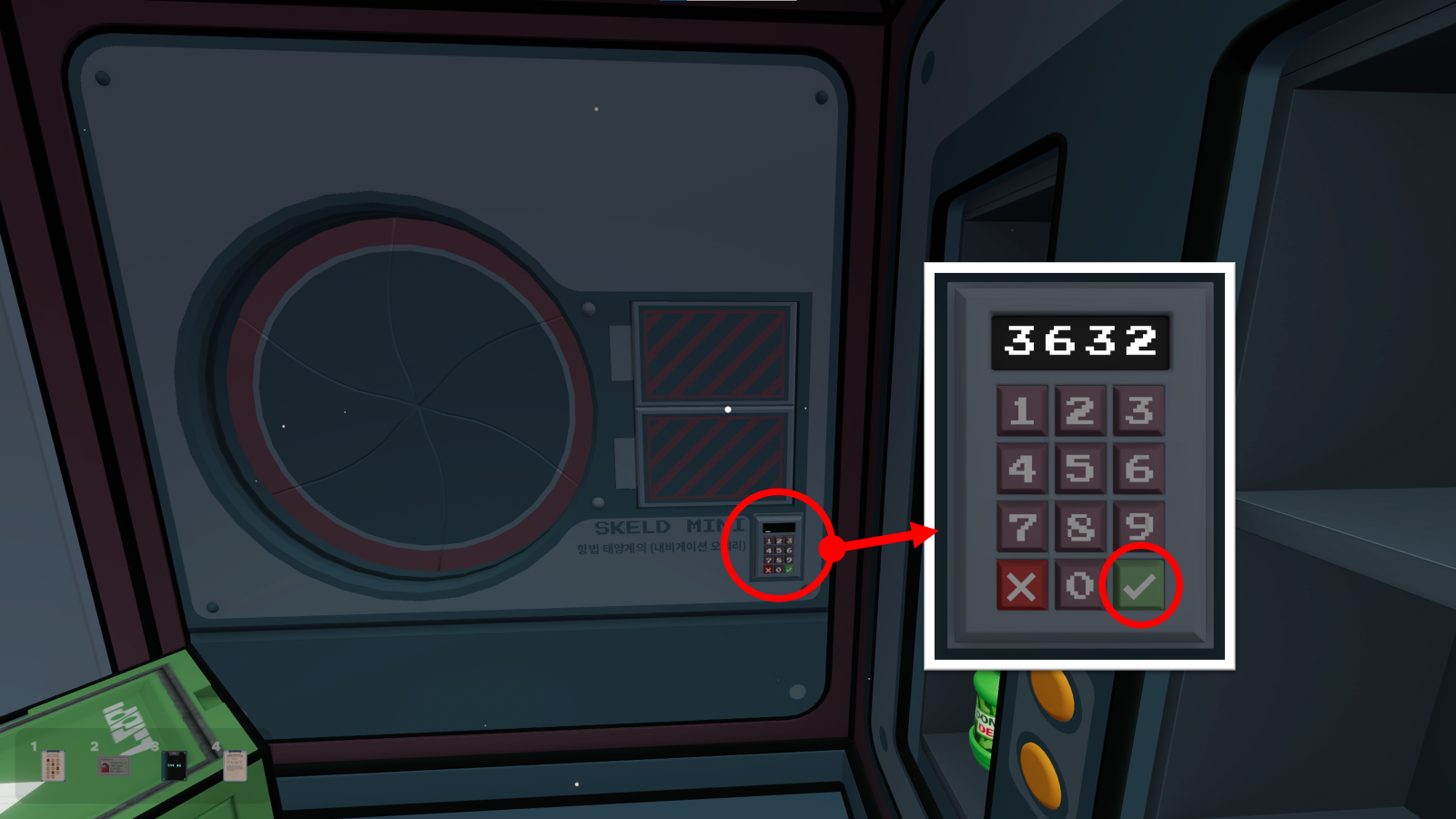 조종실 오른쪽에 있는 키패드에 3632를 입력합니다.