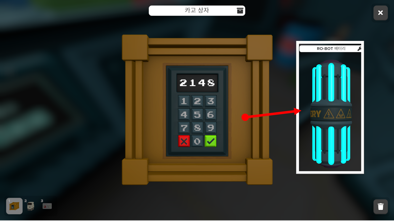 카고상자에 2148을 입력하고 로봇 배터리를 획득합니다.