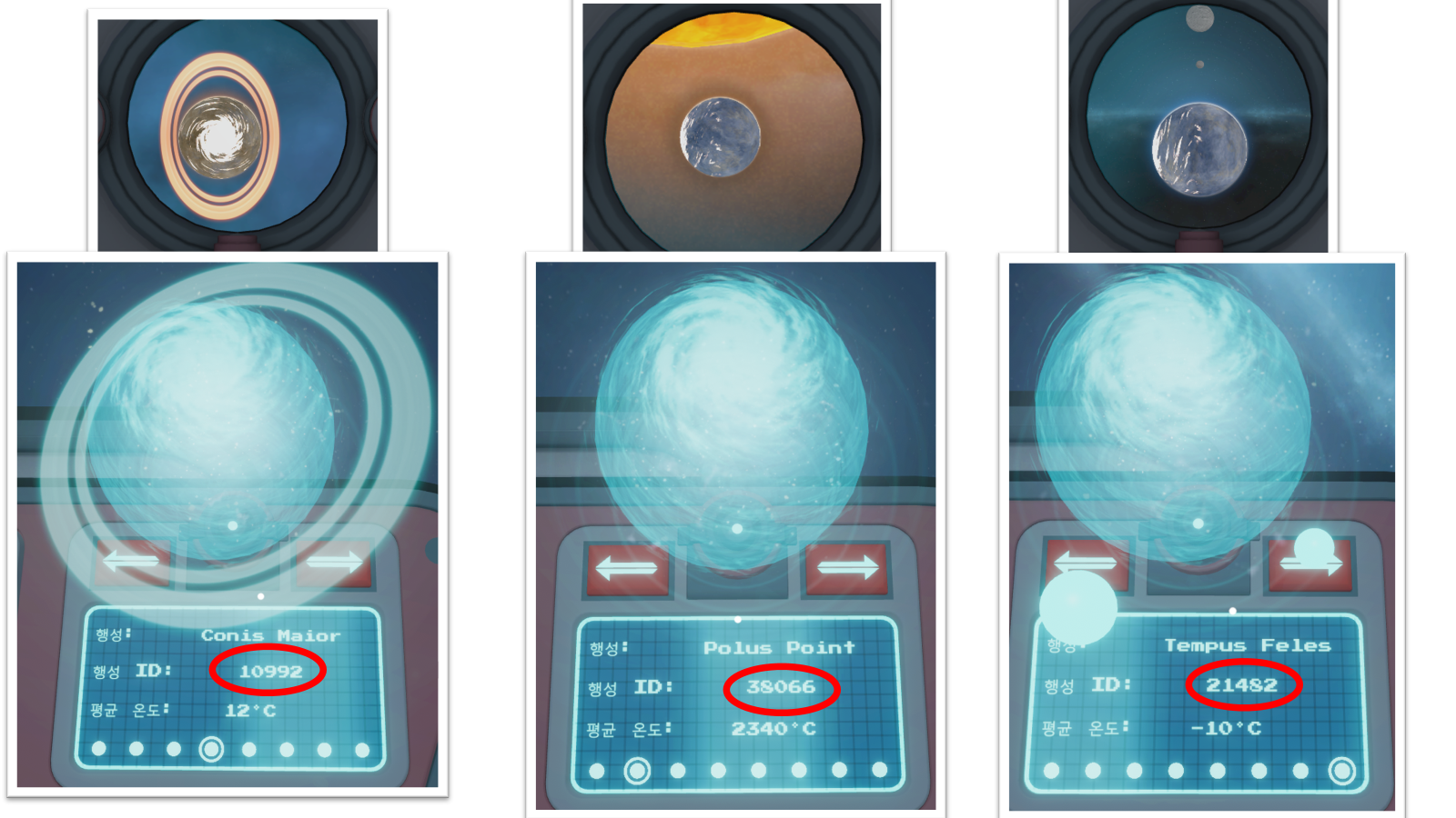 그리고 각 행성에 특징(고리와 위성 갯수)에 맞게 행성 ID를 찾아서