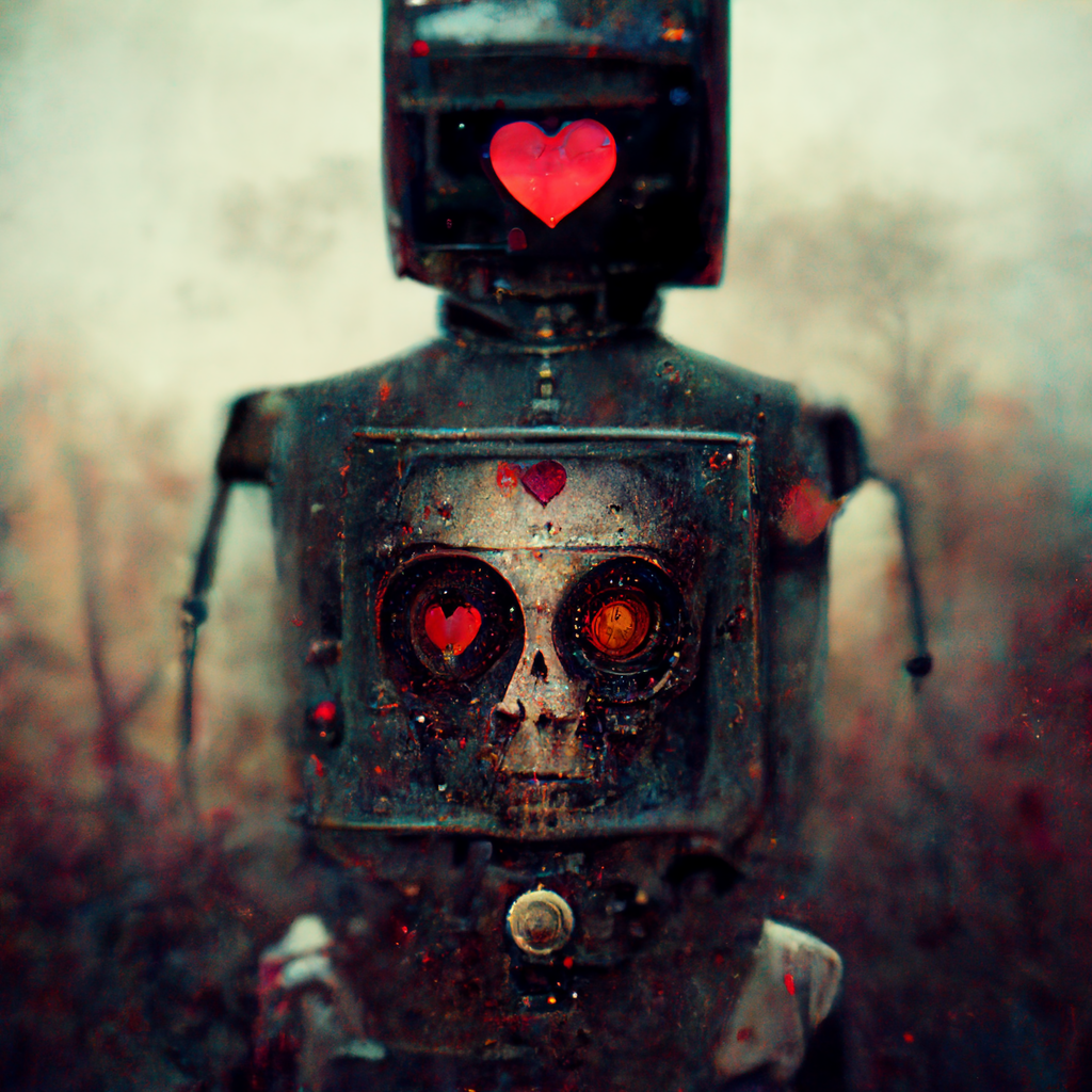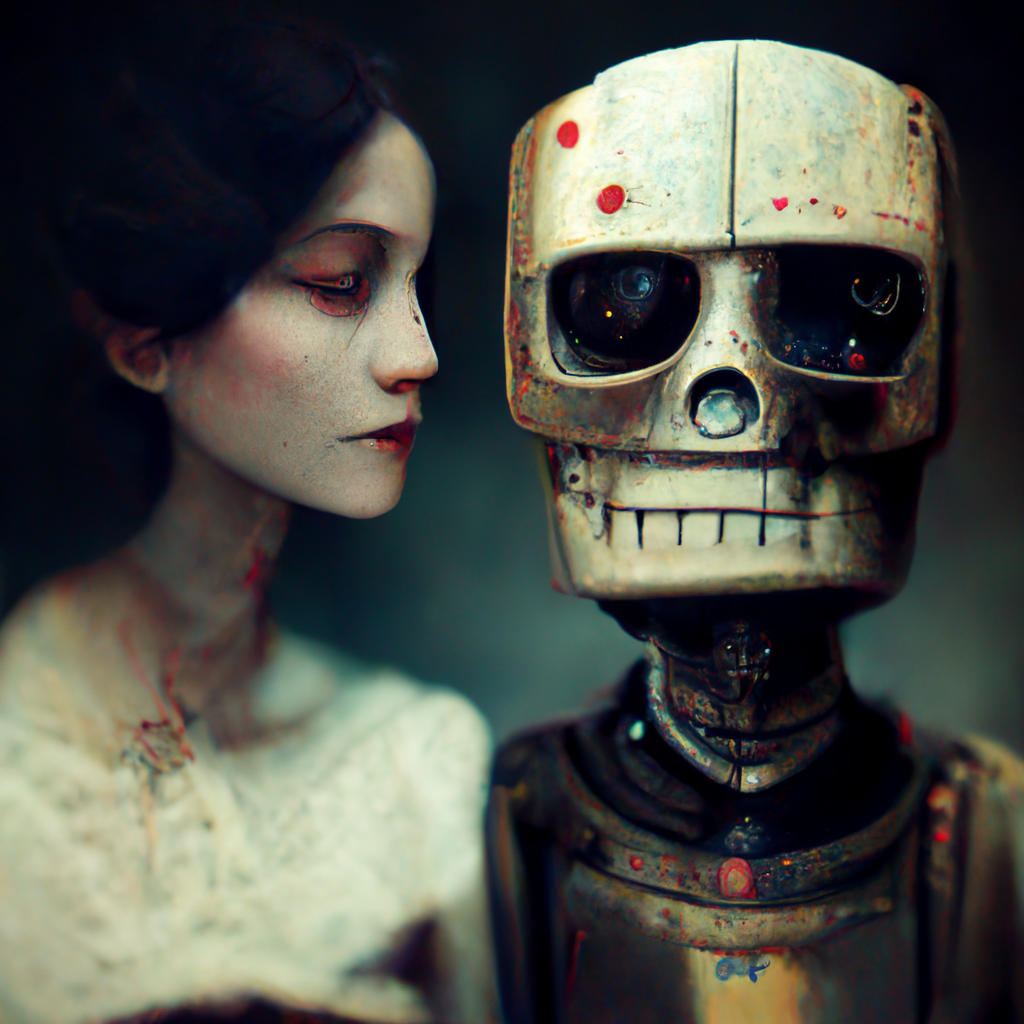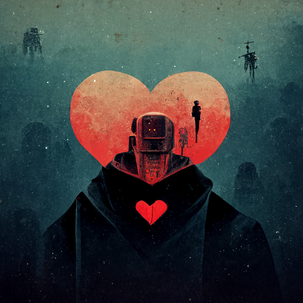 다른결과물, Love의 느낌을 연인으로 나타낸것 같다. 로봇의 Love를 다른 로봇이 아니라 인간여자로 그려놓은 느낌이다.