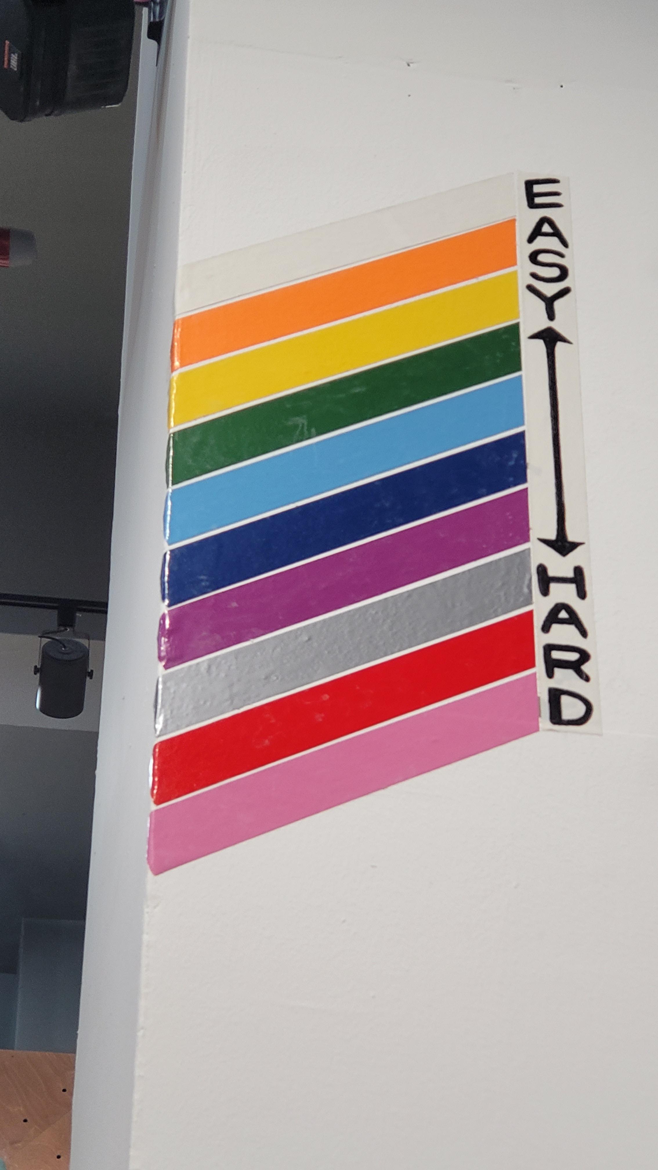보통의 클라이밍장이 빨강과 핑크가 굉장히 쉬운난이도 인데 여기는 특이하게 엄청 어려운 난이도예요..