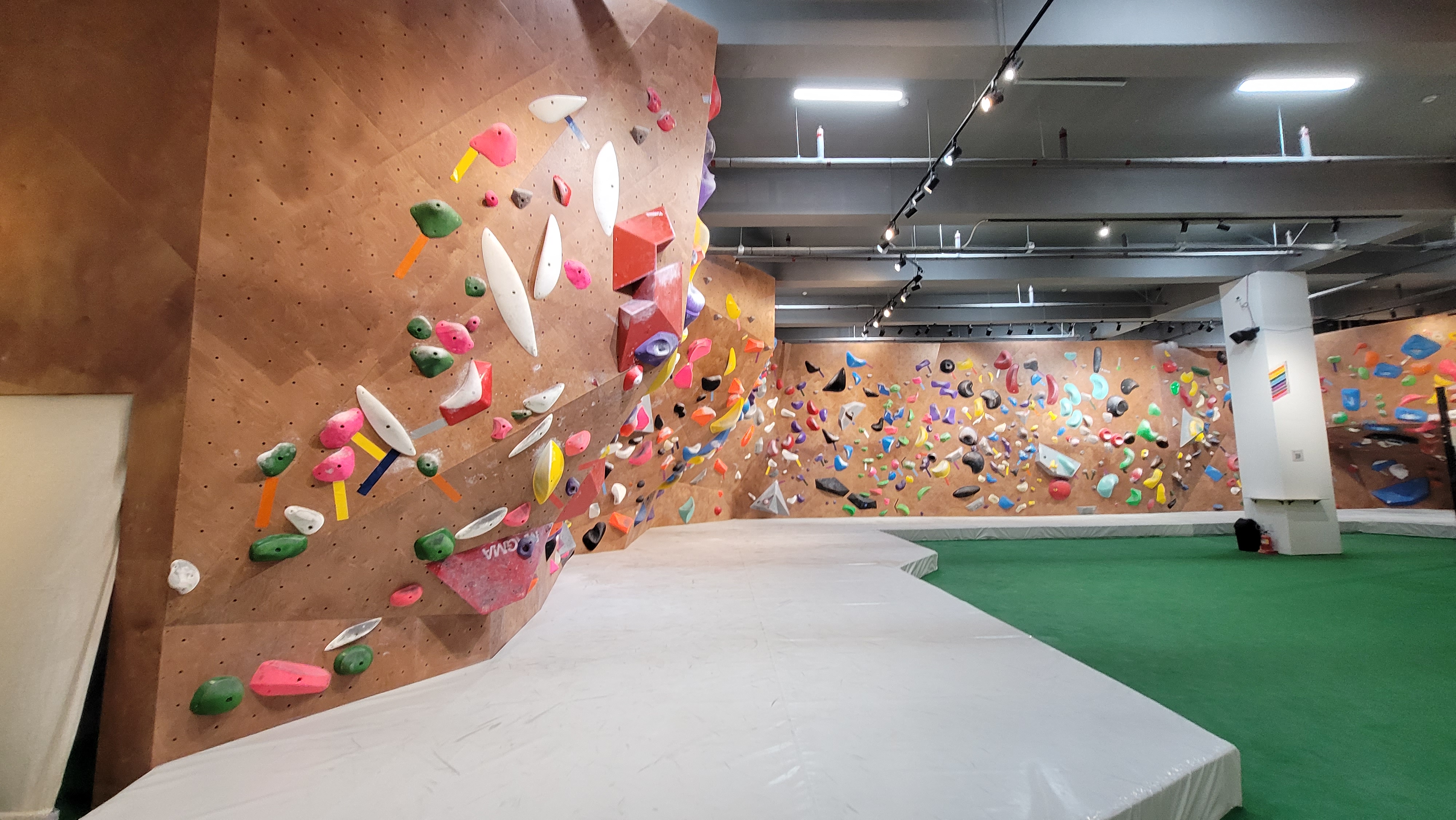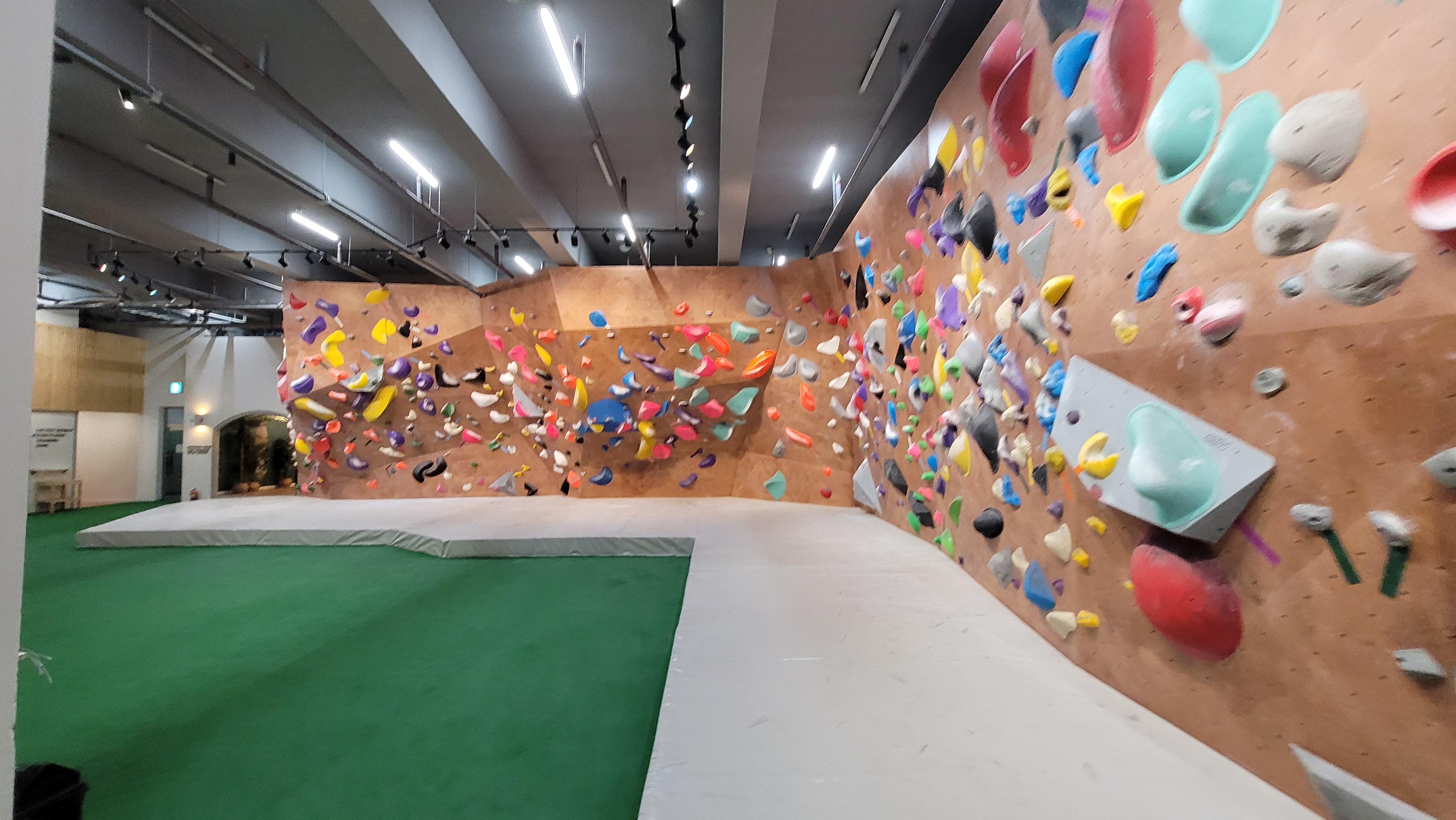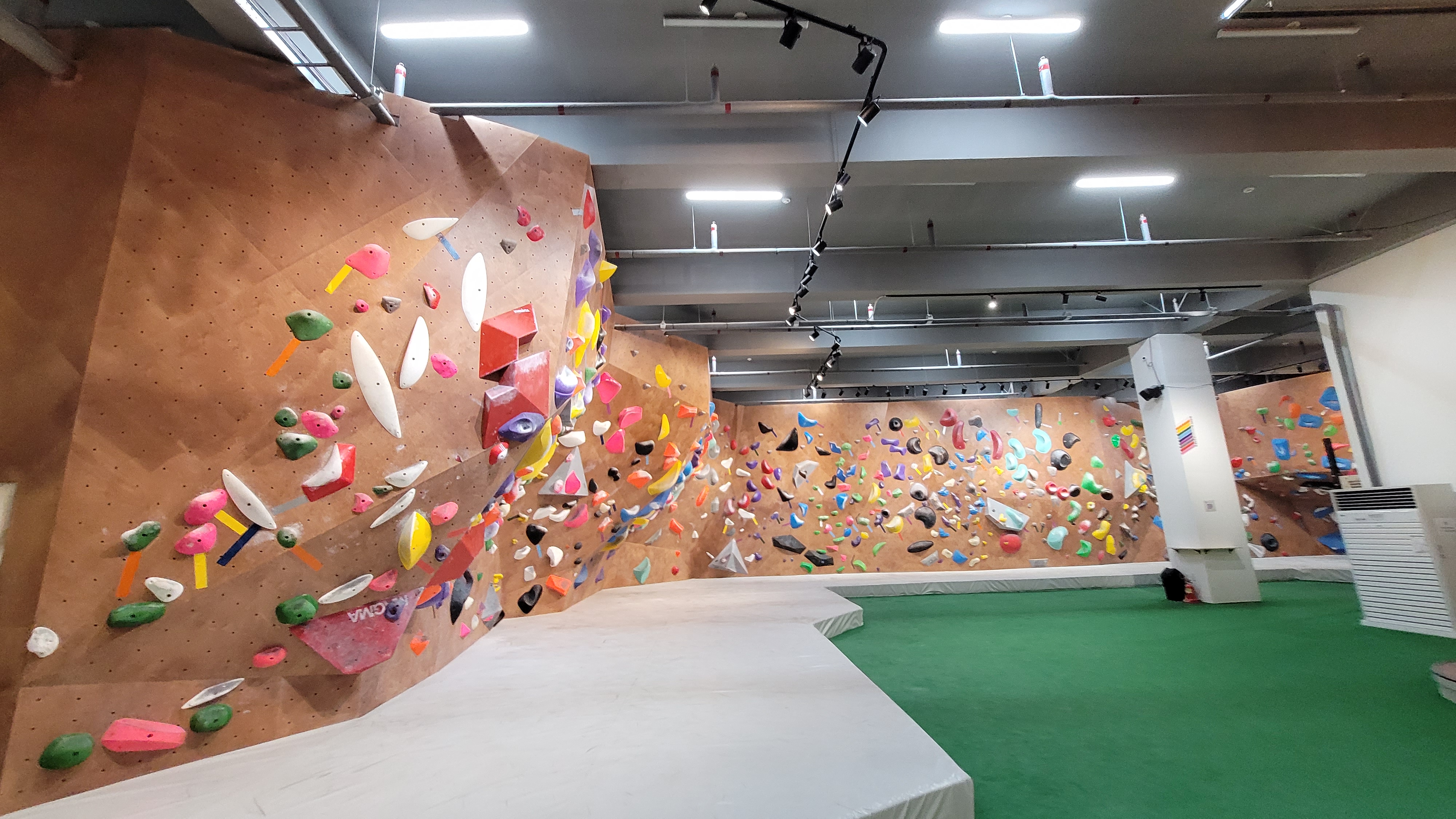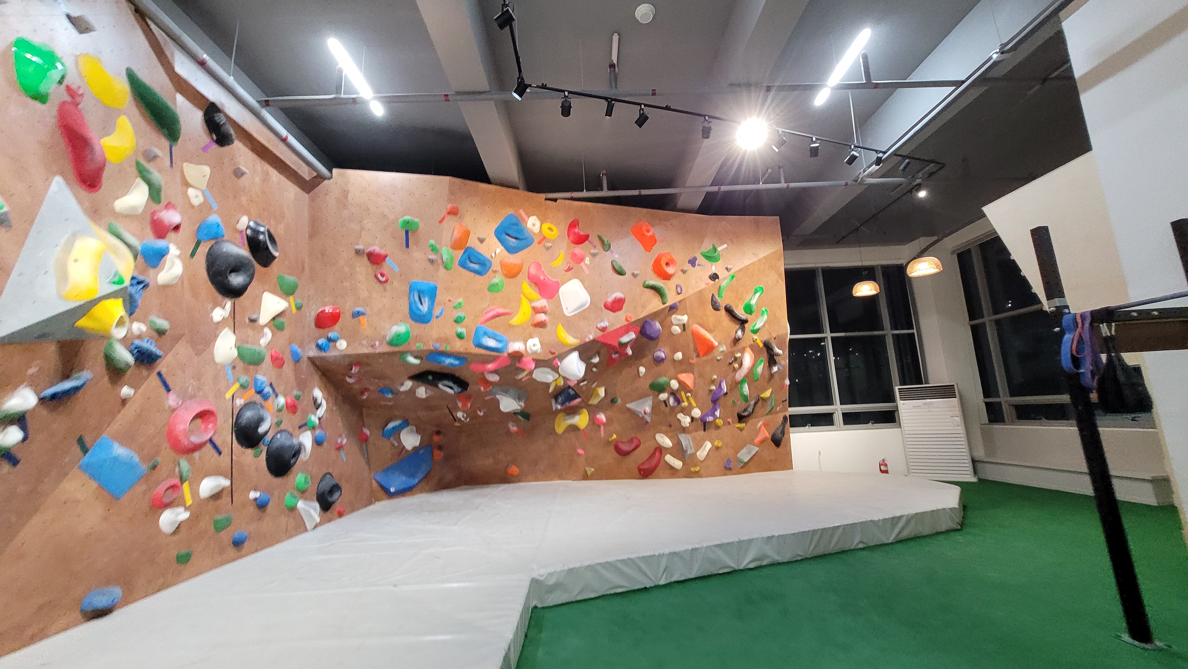 부산에서 제일 큰 클라이밍장 답게 엄청 커요, 대기 공간도 넓어서 사람들끼리 부딪히는 경우도 잘 없구, 그냥 쉬고싶을땐 적당히 빈공간 가서 쉬고 있어도 될 정도로 커요, 다만 전체공간에 비해 벽이 많은편은 아니라 조금 아쉬웠어요. 물론 전체공간에 비해 많은편이 아니라는거지 다른 클라이밍장 대비해서는 굉장히 많은편이 맞아요.