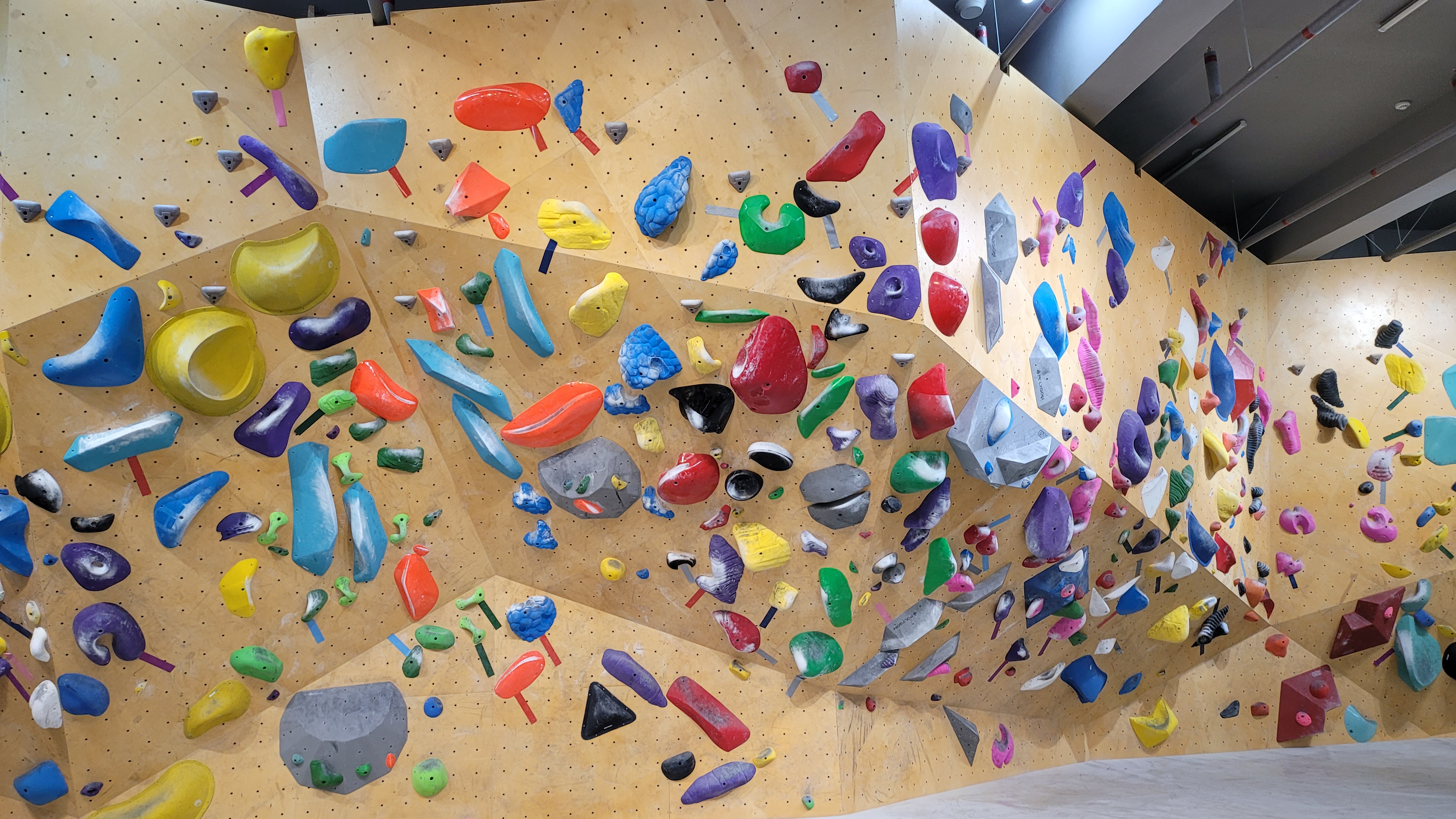 D 섹터 벽은 아주 가파른 오버행벽 + 직벽으로 이루어져있어요, 거의 상급자 문제들로 이루어져 있어요.