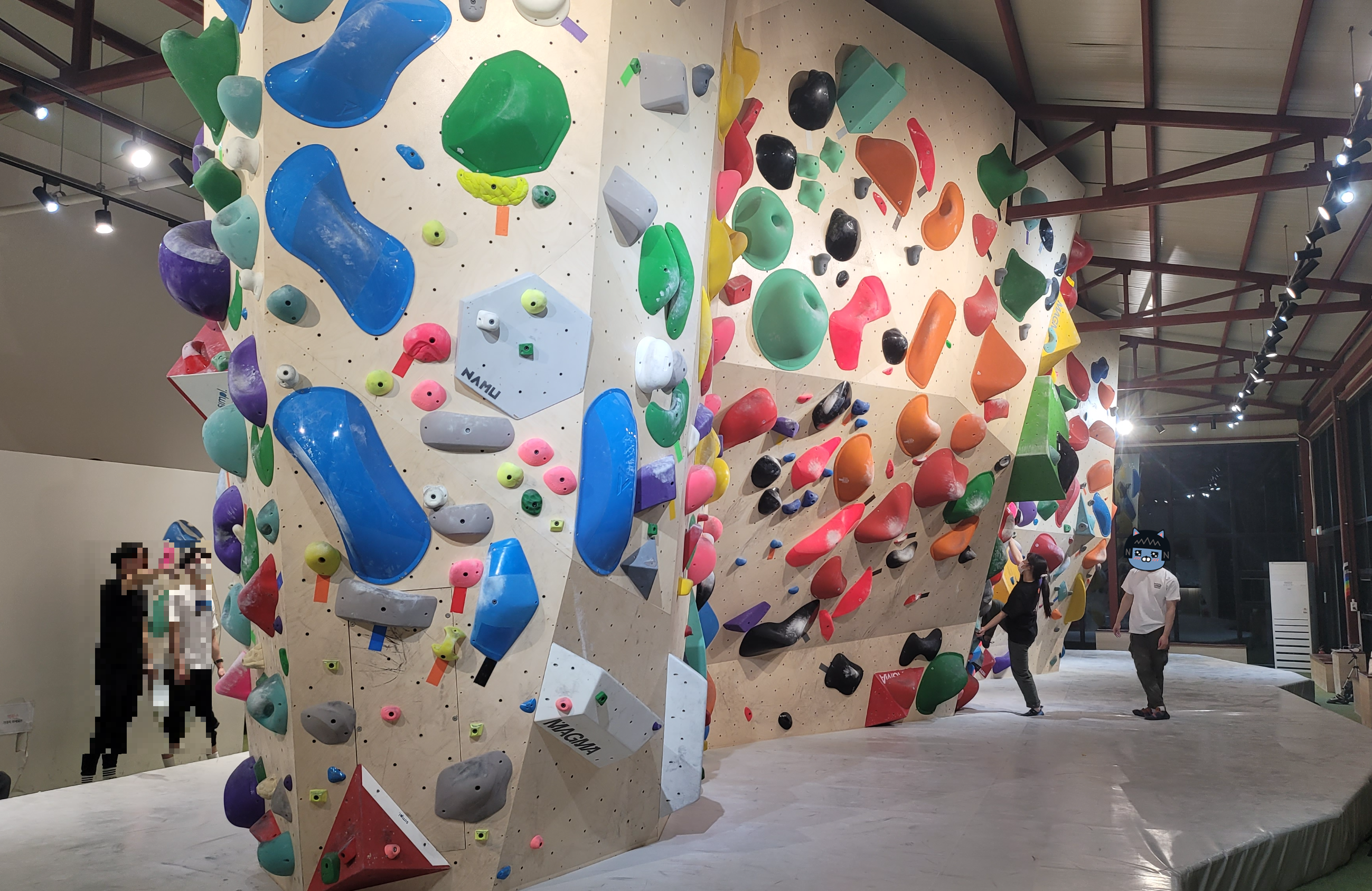 그래서 클라이밍장의 크기는 '중' 이지만 실제로 볼더링을 할때는 '소' 클라이밍장에 와있는 느낌이였어요.