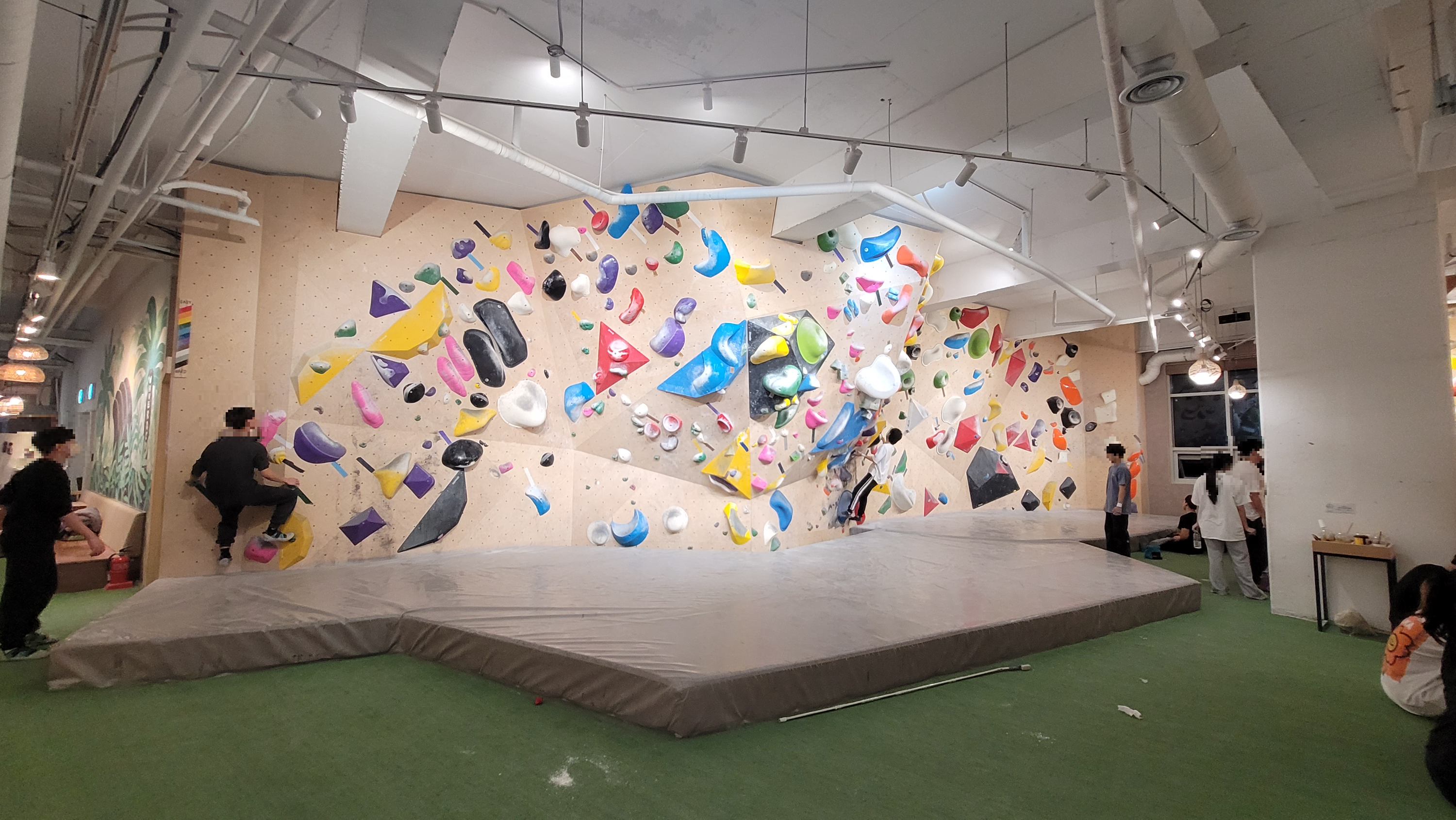 일단 클라이밍장이 크고 문제들도 많아서 사람들이 많아도 어느정도 자유롭게 문제를 풀 수 있다. 너무 많이 몰려있으면 안몰린 곳으로 가서 하면 그만이기 때문.