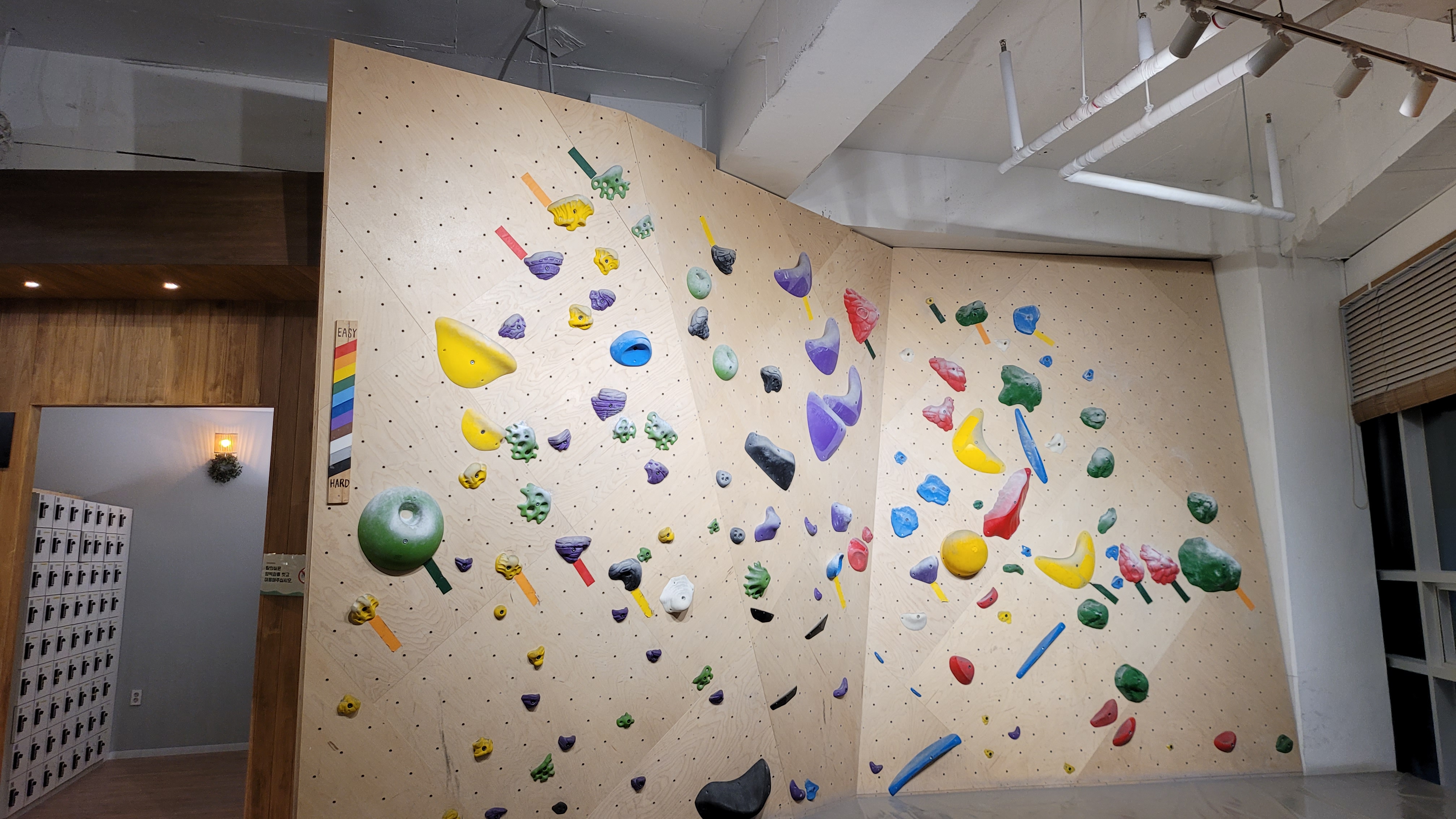 하지만 기본적으로 넓기때문에 다른 소형클라이밍장에 비해서는 훨씬 쾌적한 편이고 초크로인해 공기가 탁해지는 느낌을 거의 받지 못해서 좋습니다.