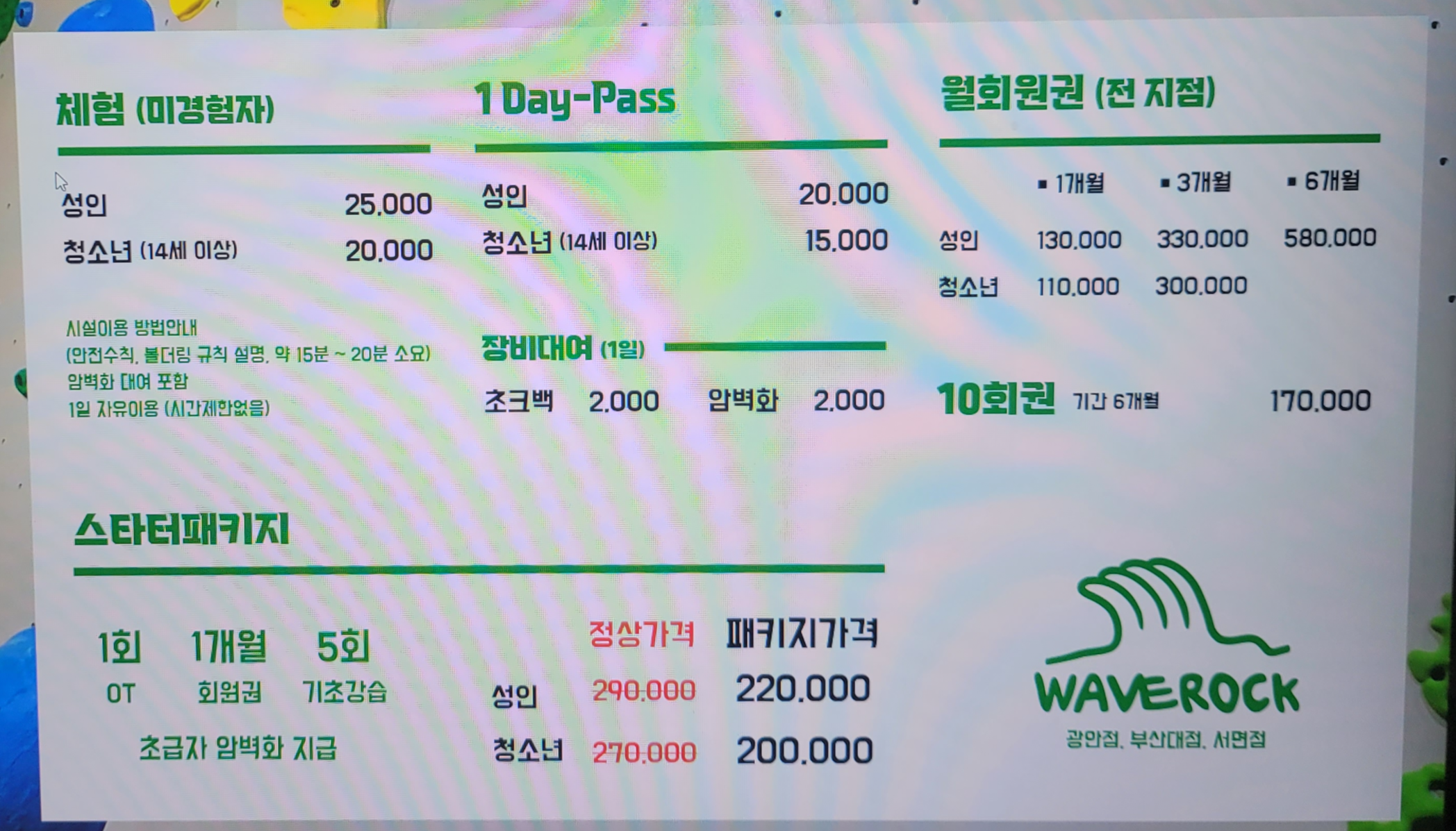 중 : 광안리 웨이브락, 정관 리버스락, 김해 두클라이밍, 김해 야미 클라이밍