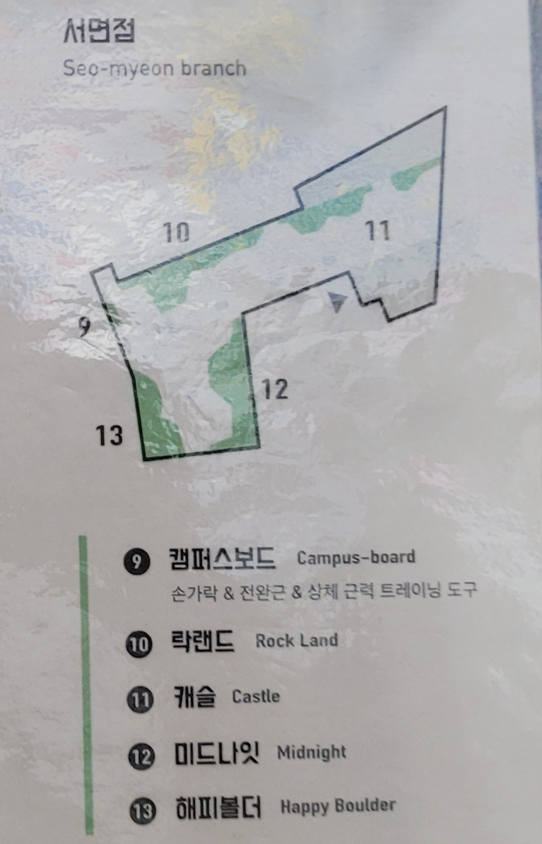 서면 웨이브락의 벽은 4개로 구분가능한데, 입구부터 캐슬, 락랜드, 미드나잇, 해피볼더 입니다.