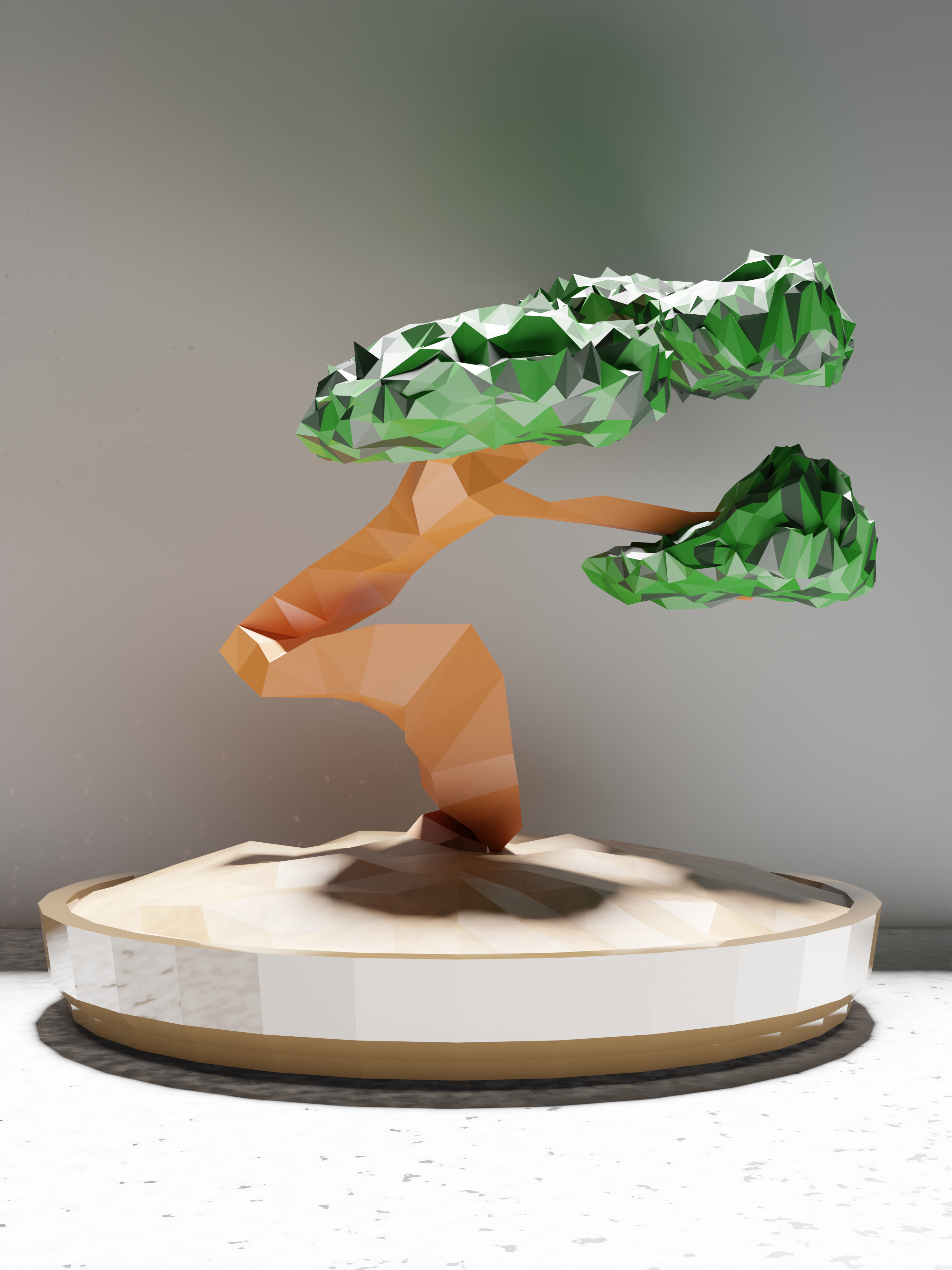 3번째 수정한 분재, 흙에 쉐이드 스무스 및 Nomal을 적용했다. 훨씬 자연스러운 흙의 모습을 하게 된 것 같다.