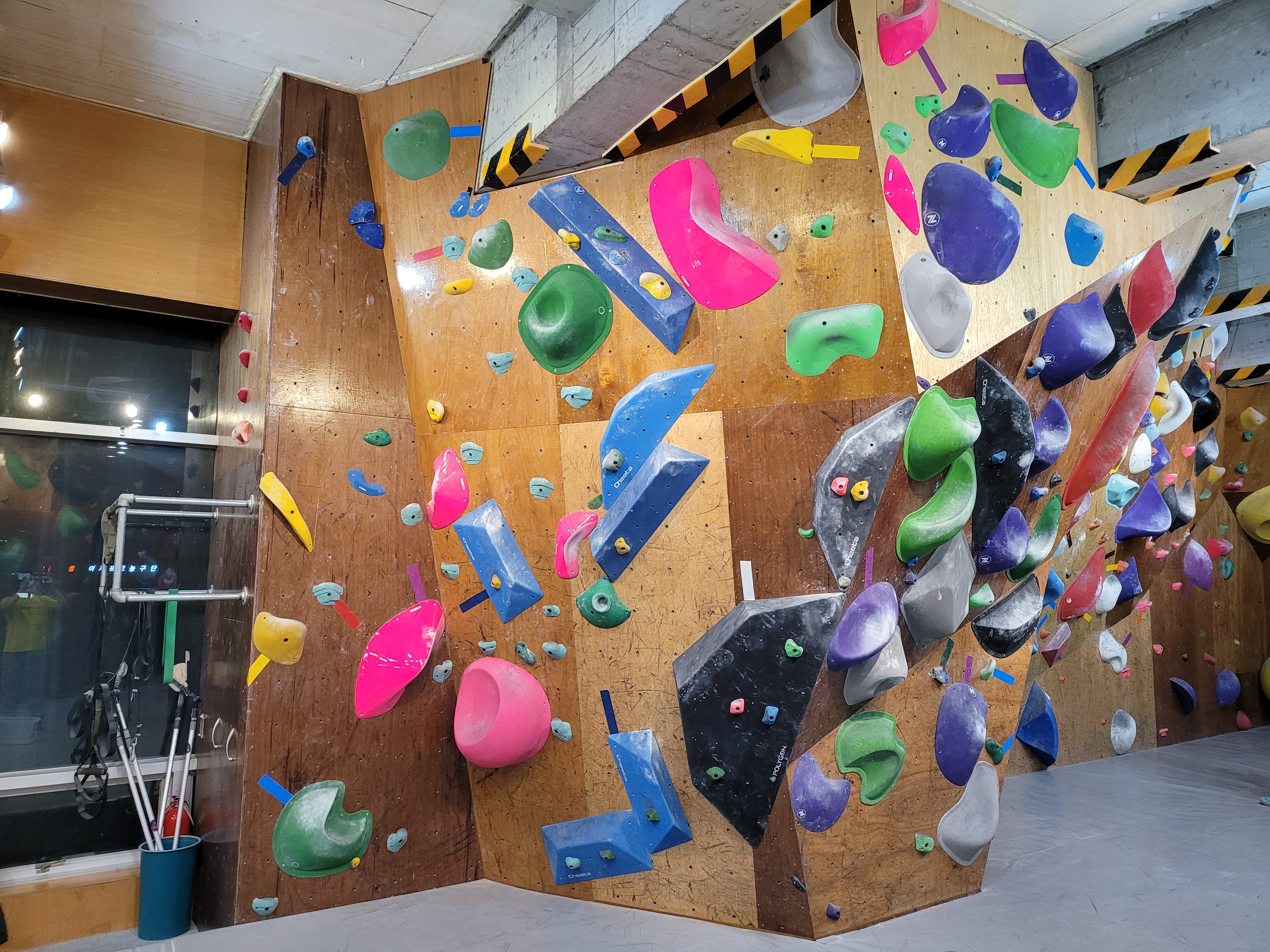 많은 클라이밍장이 크기는 해도 지구력벽이 없는 경우가 있는데 여기는 지구력 벽이 있어서 클라이밍 전후로 지구력문제하고 나면 지구력이 엄청 금방 늘어요