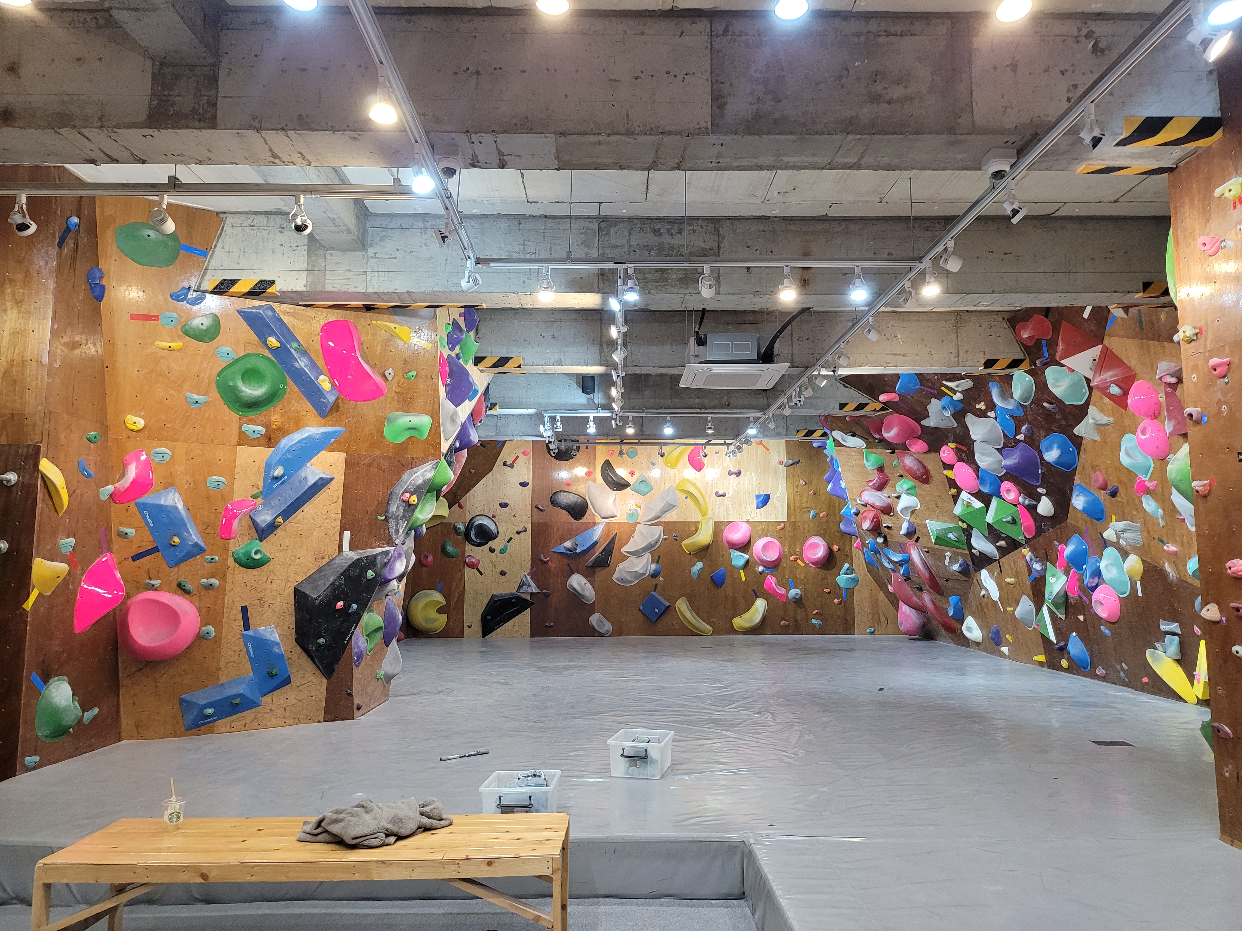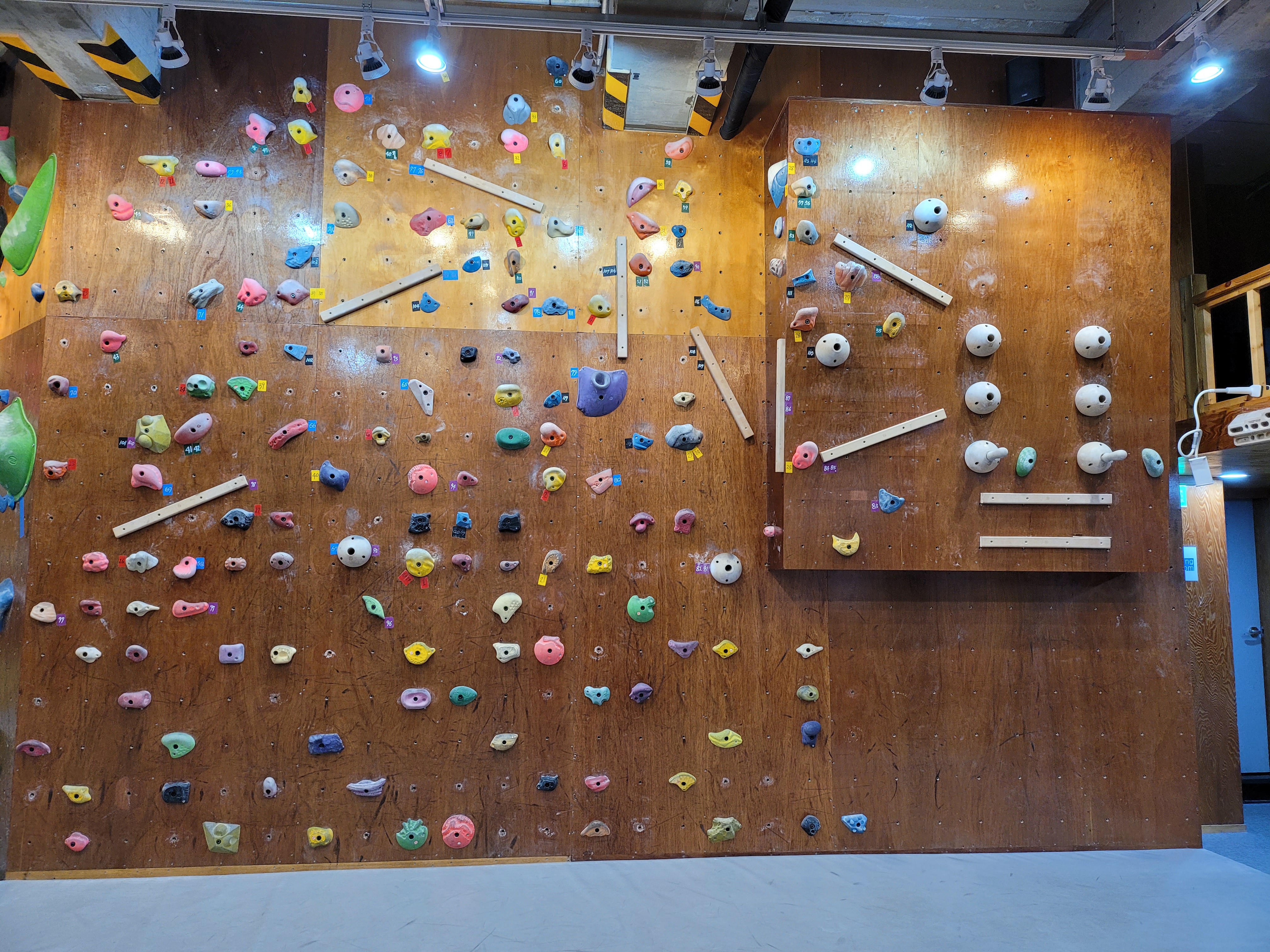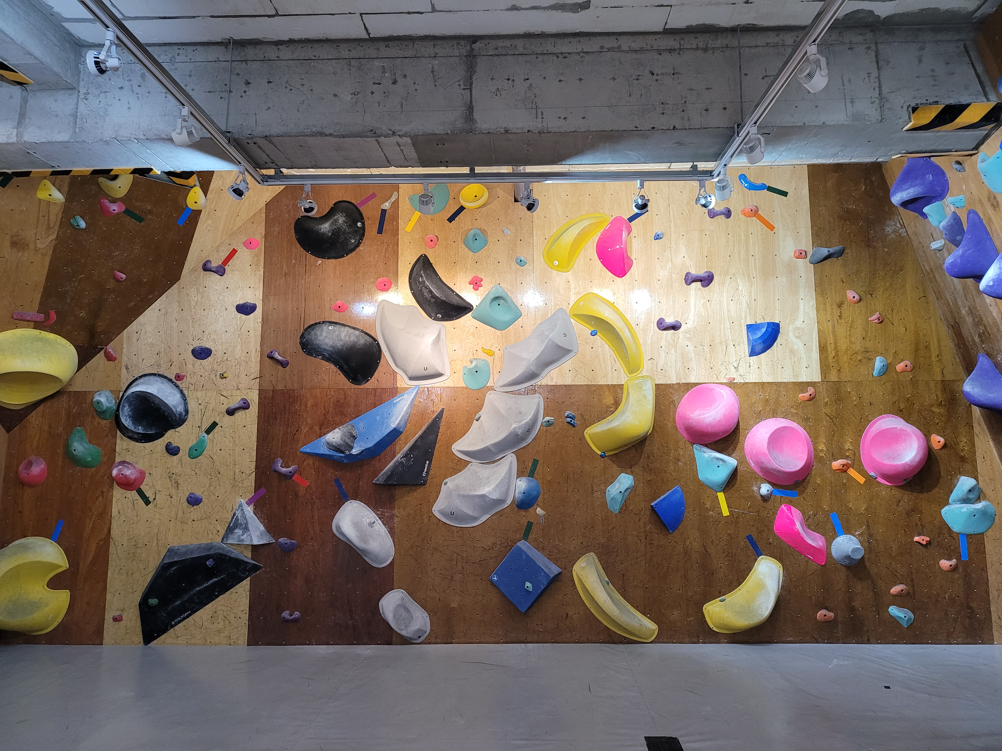 초보자 단계(빨,주,노)의 문제가 적어서 맨처음 클라이밍을 시작하고, 기본근력이 안되시는 분들은 풀문제가 거의 없을수도 있어요