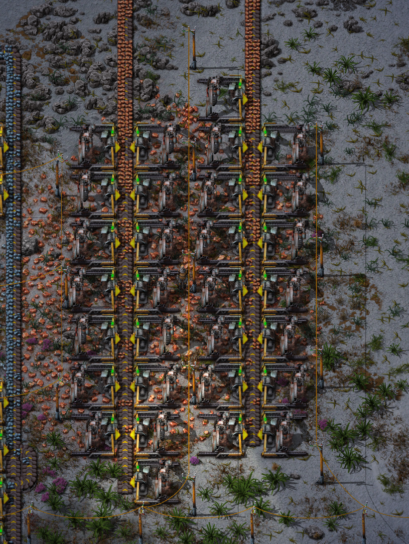 철판이든 구리판이든 한줄을 가득채우려면 채광드릴 60개와 용광로 48개가 필요하다는것..