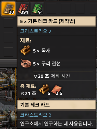 기본테크카드는 목재랑 구리선만 있으면 되서 바로 만들 수 있고