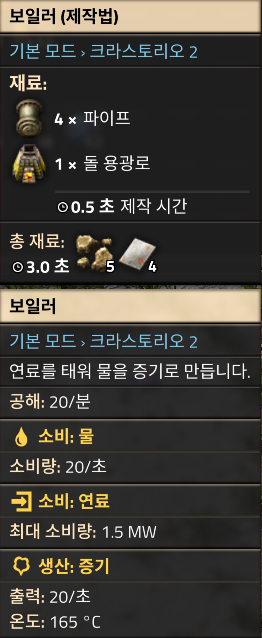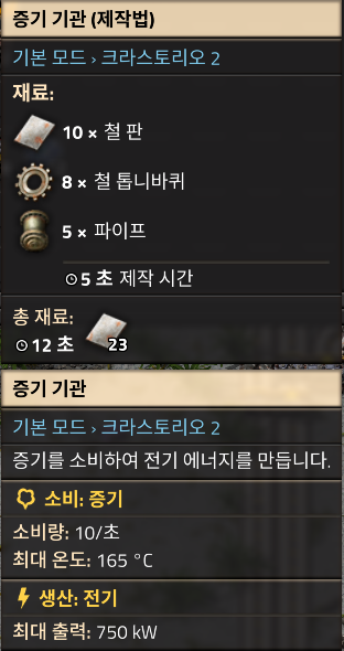 첫번째 단계인 증기발전, 증기발전은 너무 간단해서 딱히 할게 없다.