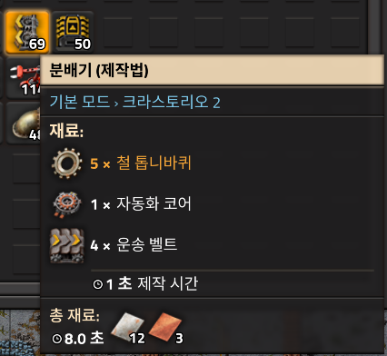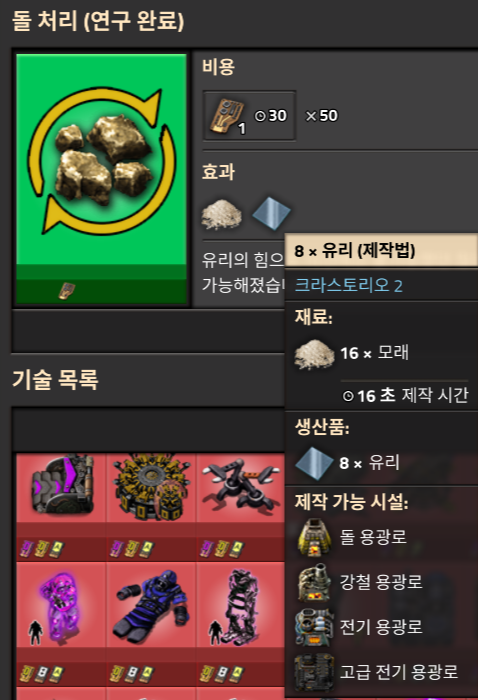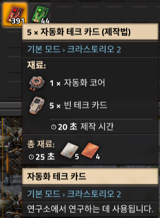 그럼 자동화 코어도 만들었으니, 이제 공장설비 제작이 빨라질 것이다. 그럼 바로 테크카드자동화를 시작해보자.