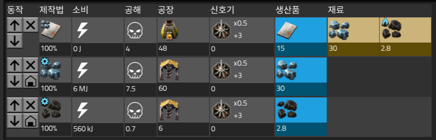 그래서 1 : 2: 4의 비율로 만들면된다. 이런건 Helmod에서는 계산할 수 없으므로 각각 설명을 보고 직접 계산해야된다.