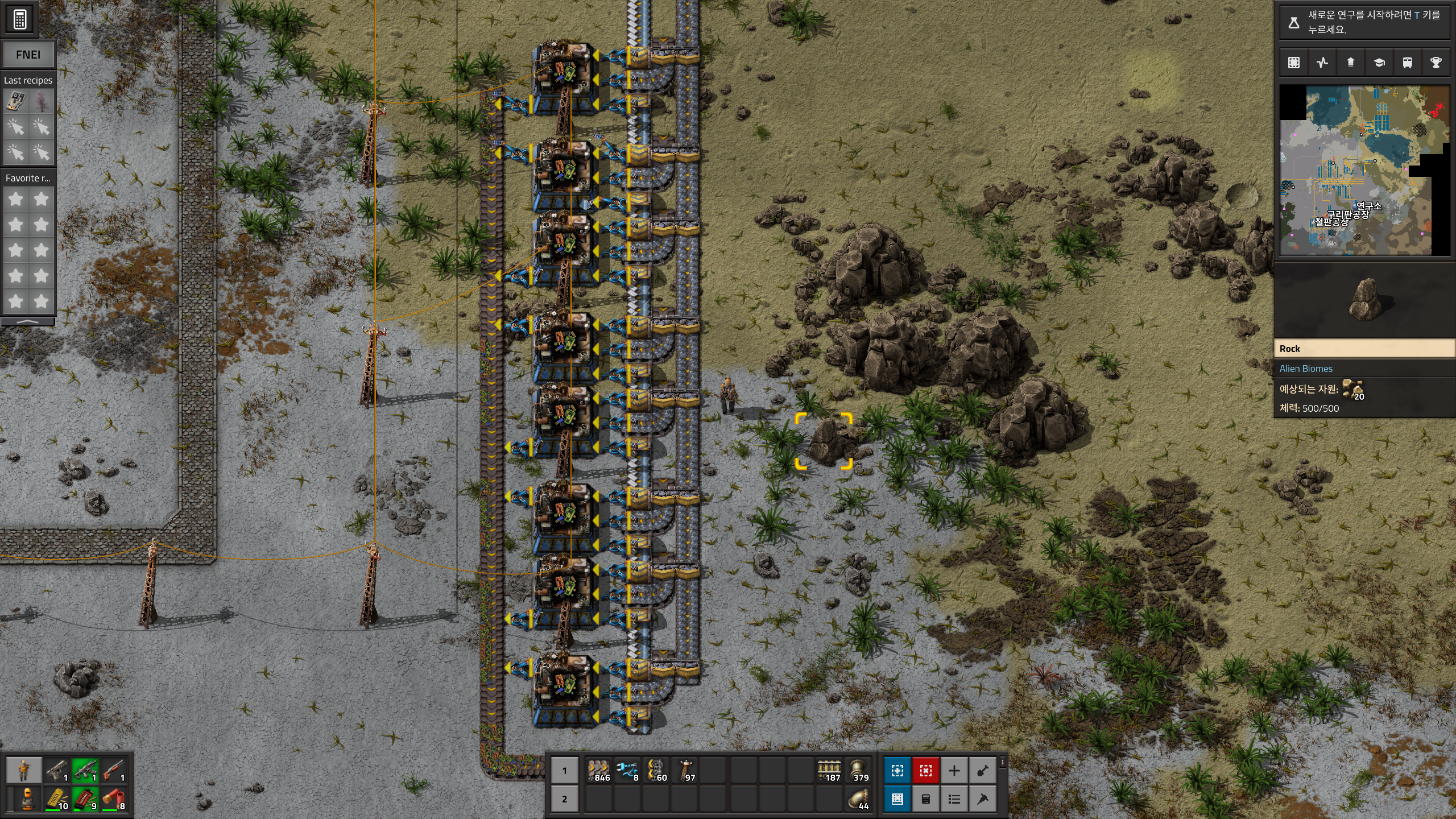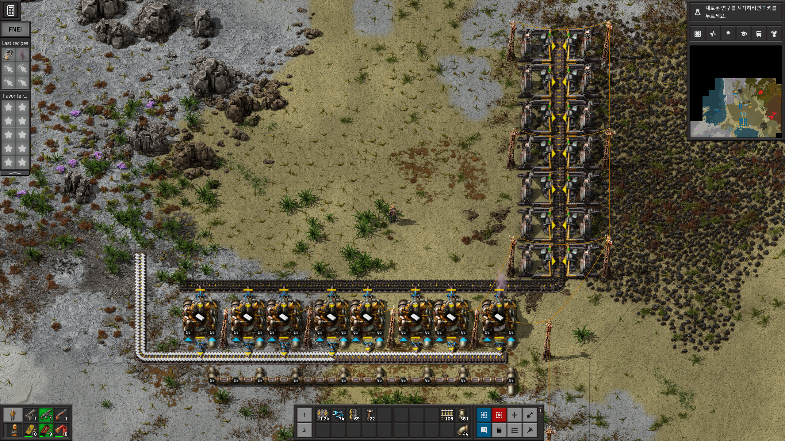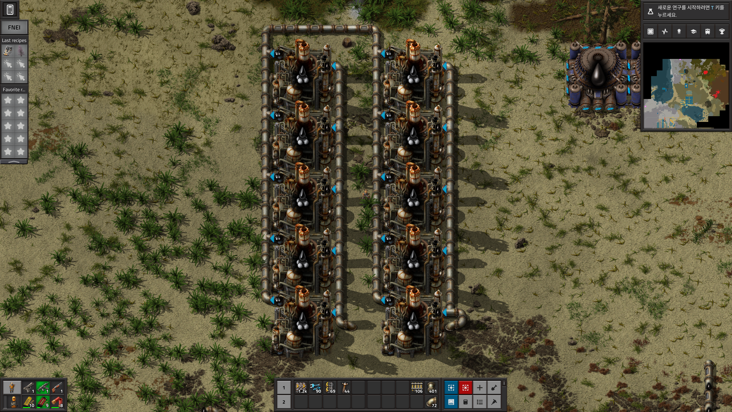 우리의 목표는 플라스틱 1줄이였으나... 플라스틱1줄을 위한 원유시추기가 8개나 필요하여 이 비율로 지으면 다른 원유쓰는 설비는 하나도 못쓰게 되버린다.