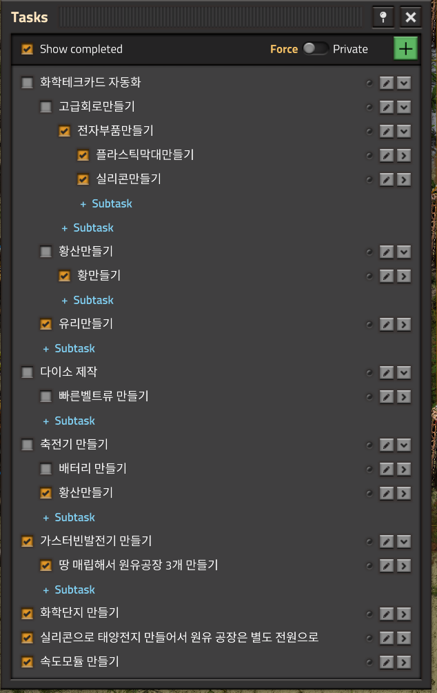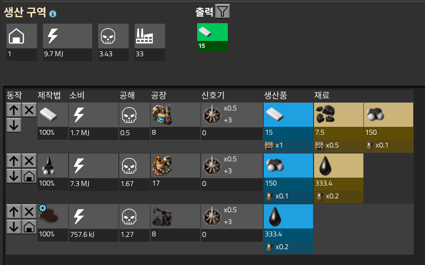 저번에 실리콘공장과 원유시추 까지는 완료했으니 오늘은 화학단지와 황, 유리까지 전부 만들어볼 것이다.