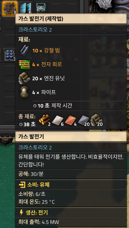이번에 선택한 에너지는 가스발전기. 물류테크까지 연구한 상태에서 단위크기당 가장 많은 전기출력을 낼 수있다. 무려 4.5MW씩이나!