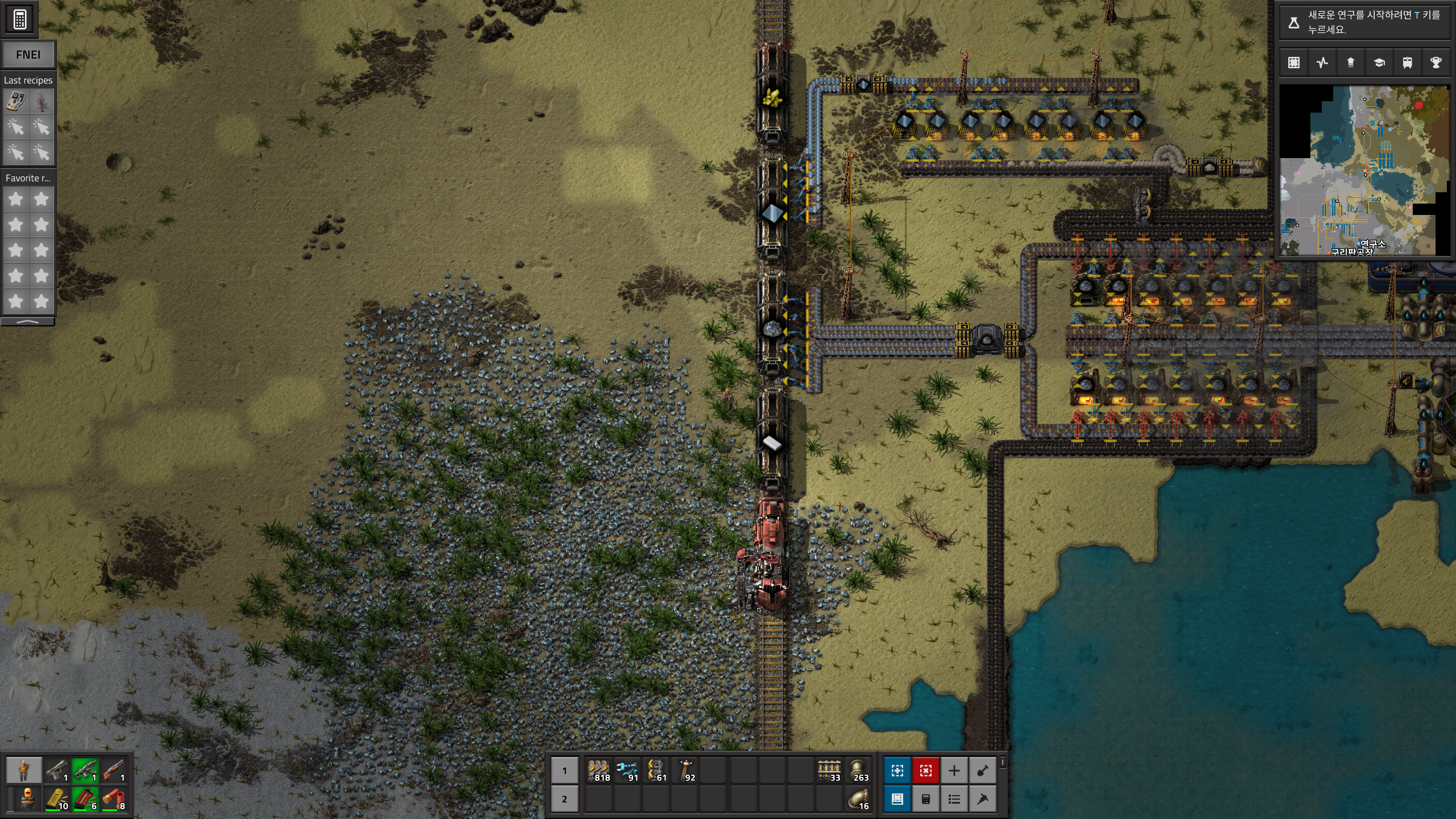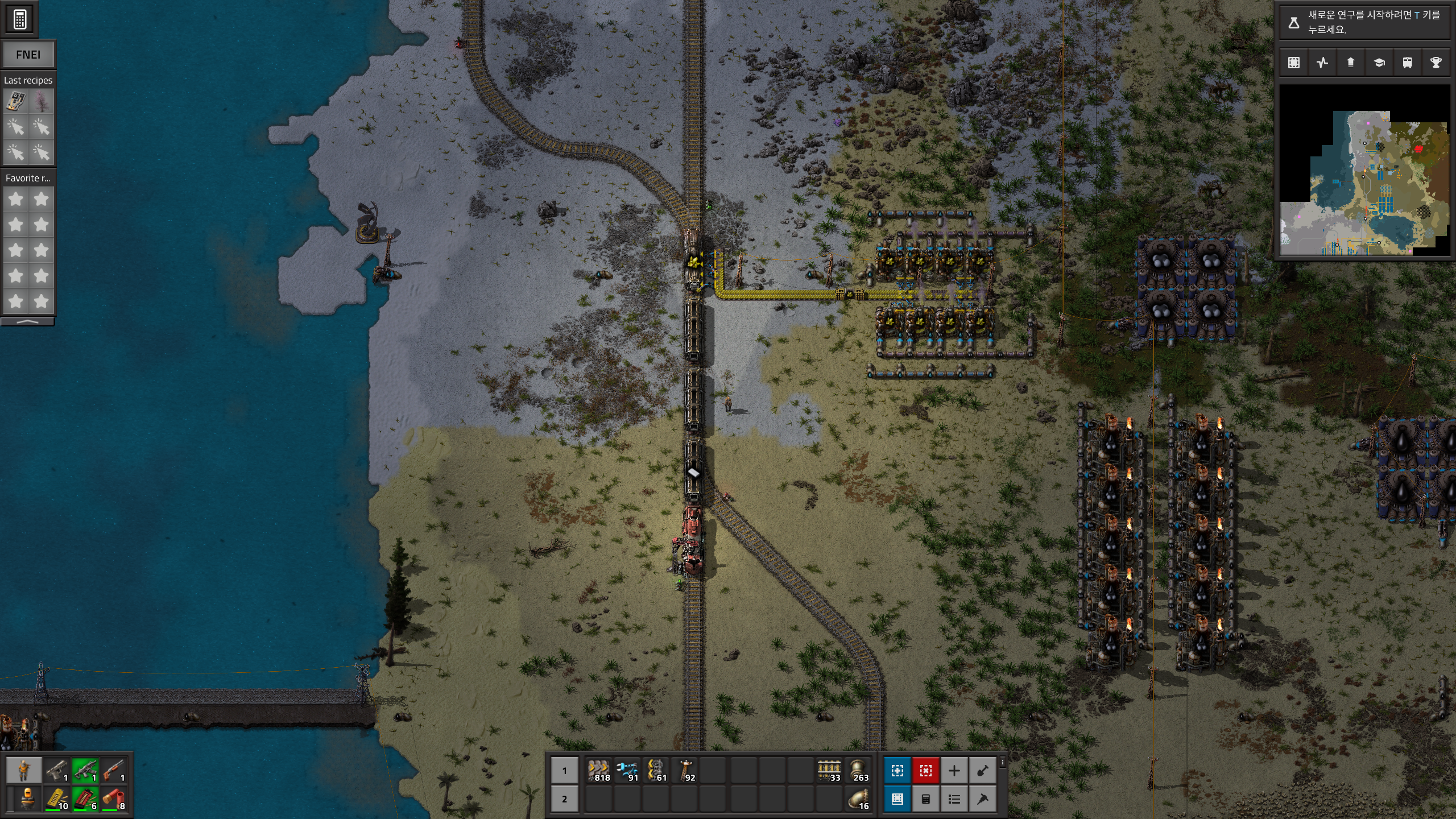 그리고 석유가스저장탱크와 석탄사이에다가 화학공장을 만들고 플라스틱을 생산해준다. 사실 반줄이면 4개만 만들어도 되는데 그냥 어쩌다 보니...