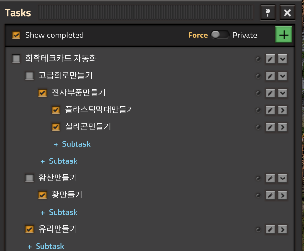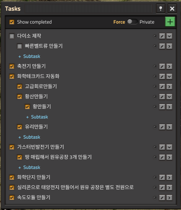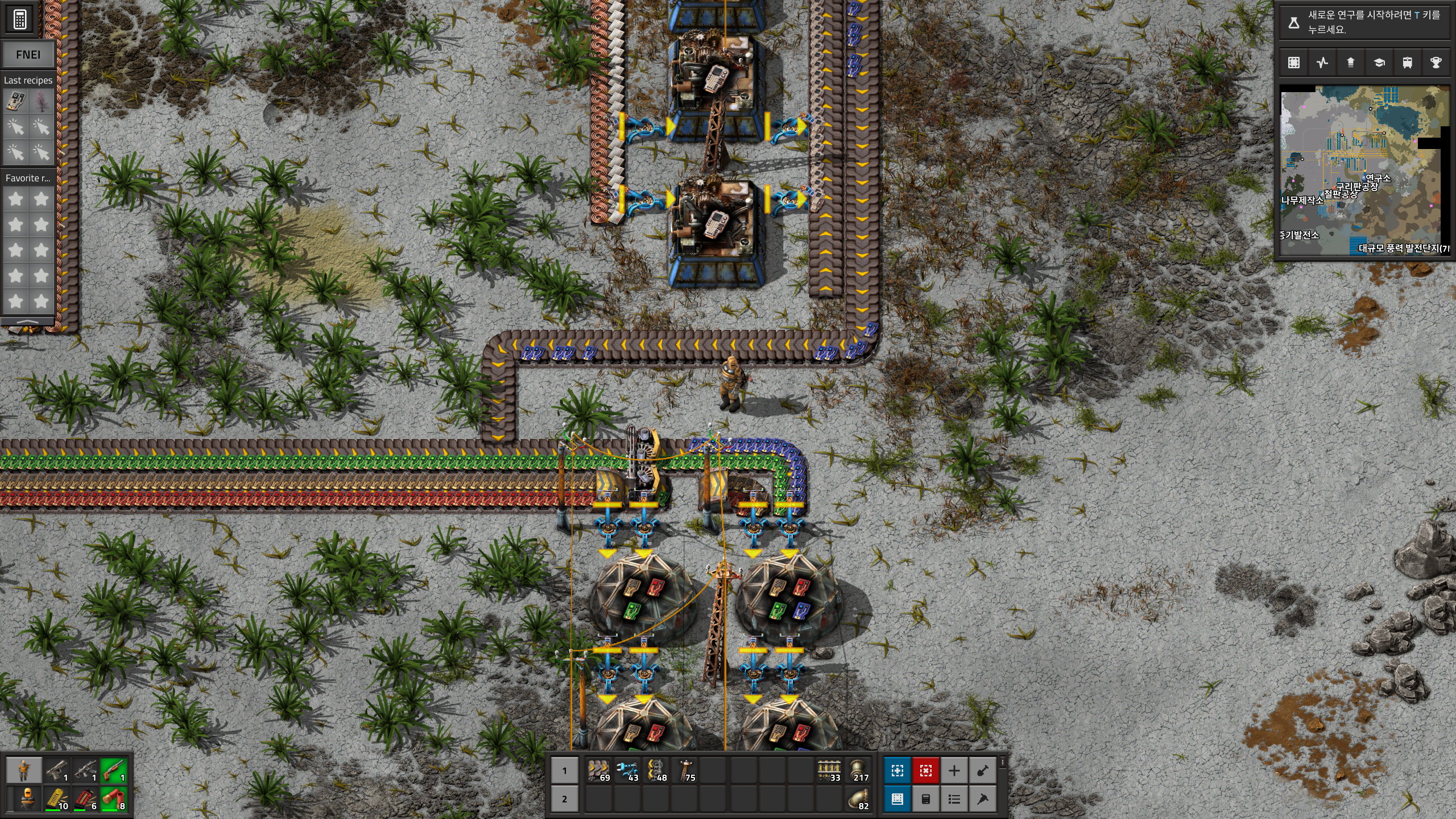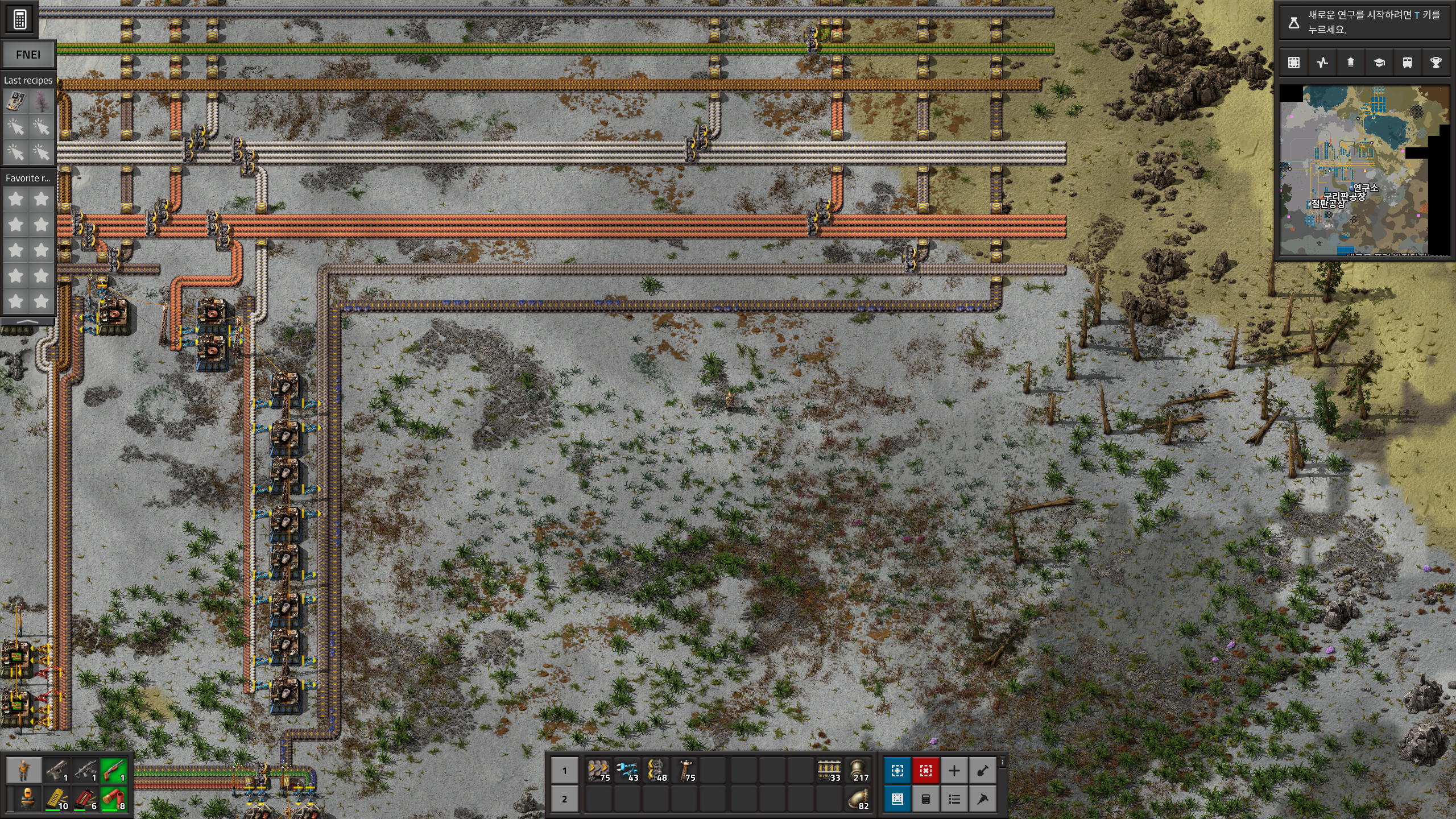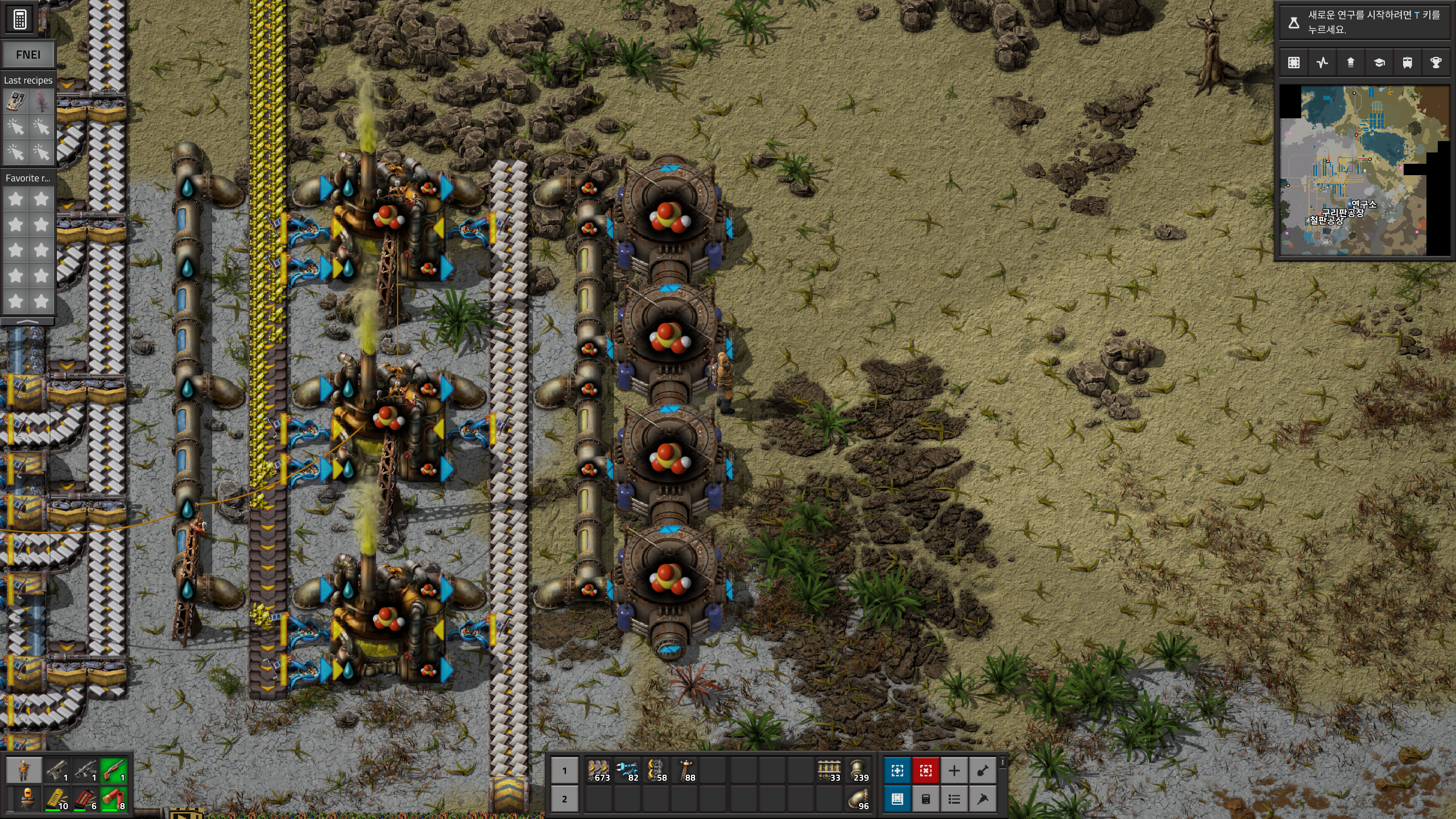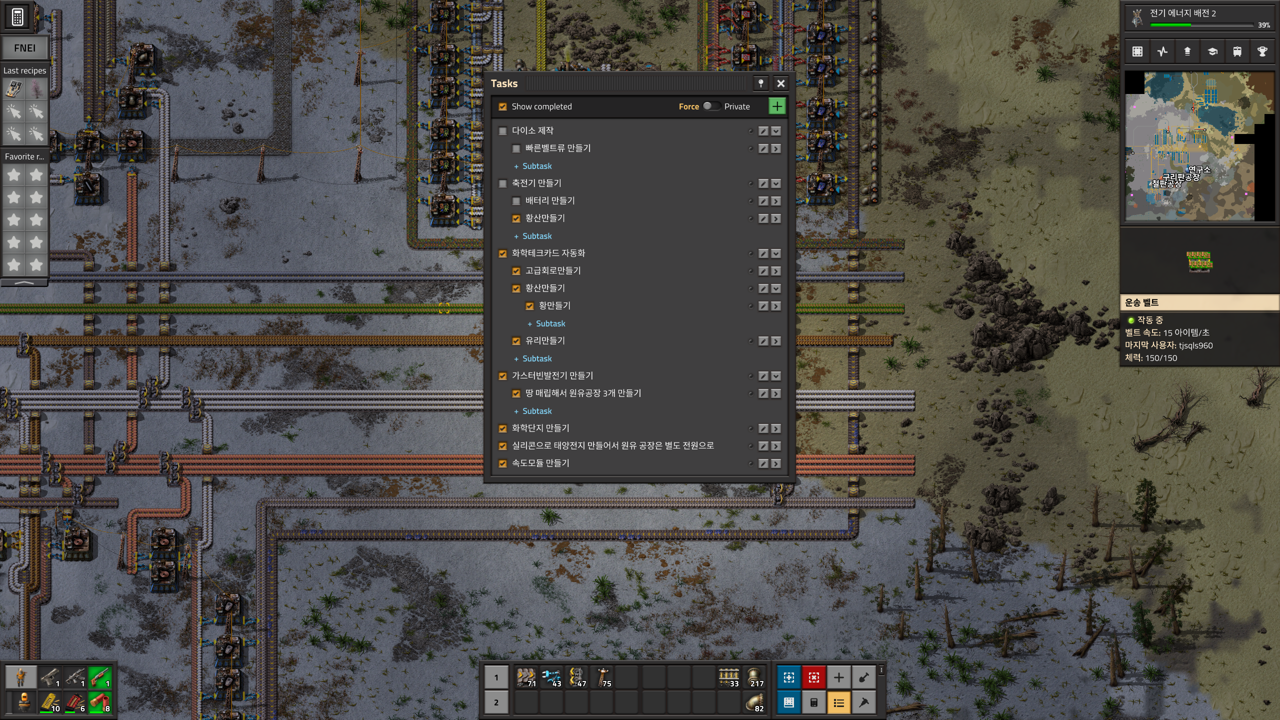 고급회로 공장 만들기와 황산만들기, 그리고 최종적으로 화학테크 자동화 만들기가 남았었다.
