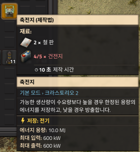그럼 드디어 화학테크 자동화가 끝났고, 아직 시간이 좀 남아있으니 축전기 까지 만들어보는걸로..!