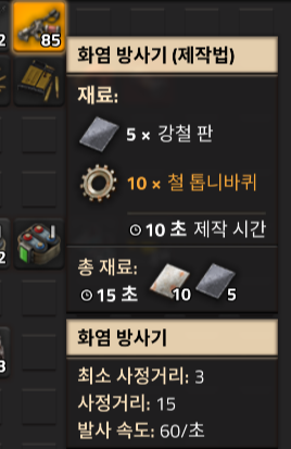 일단 화염방사기 및 화염방사기 연료부터 만들어보자