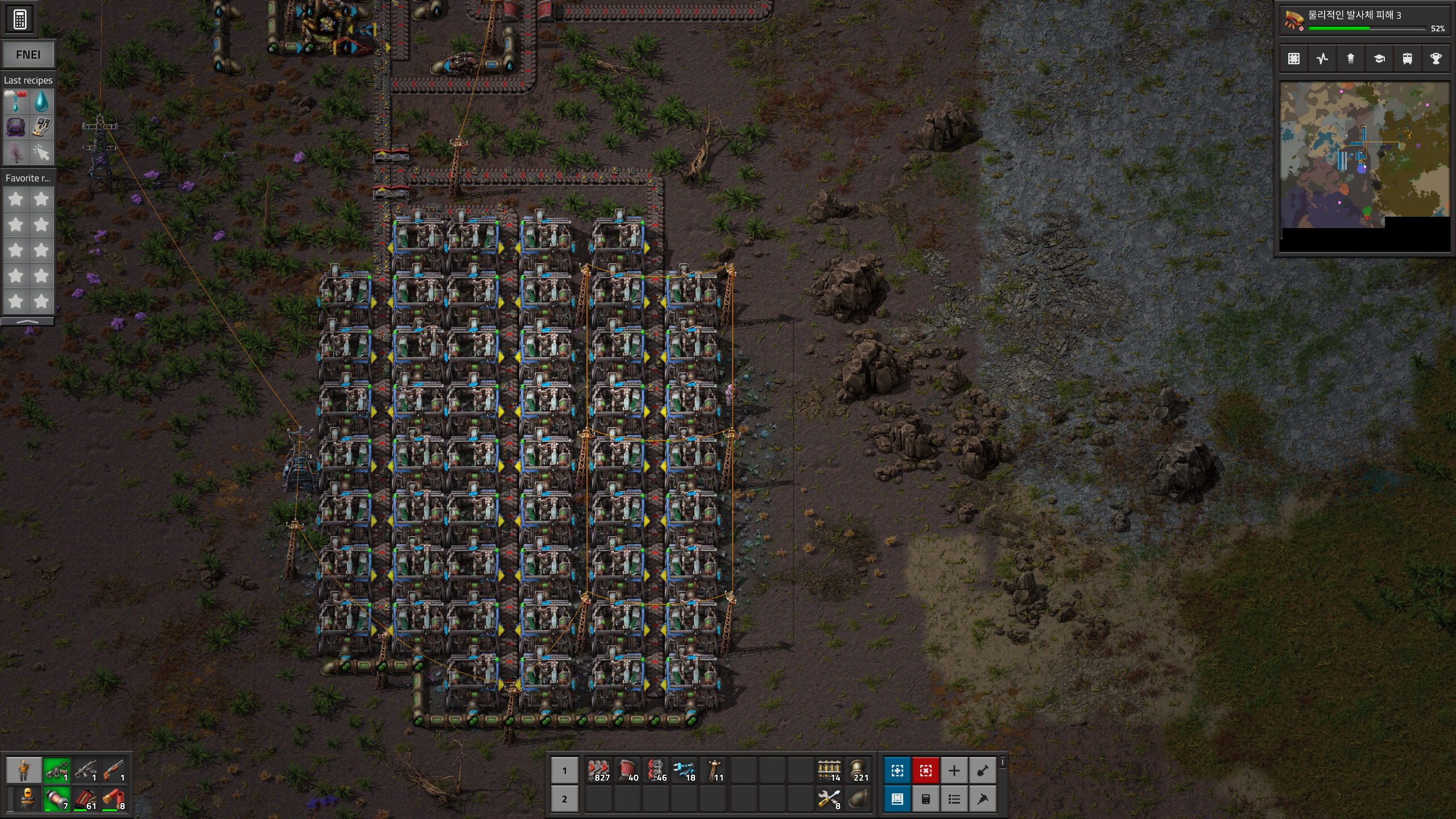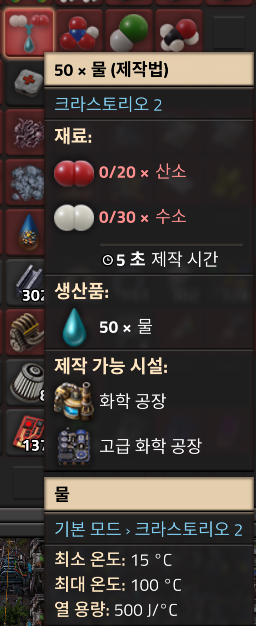 출력항목을 보면 수소가 초당 82.9만큼 과잉생산 되는데, 이를 처리하지 않으면 나중에 공장이 못돌게 되버릴 것이다.