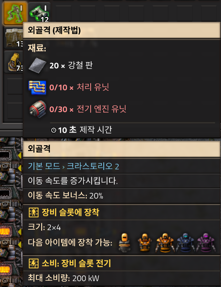 두번째는 아머에 외골격 슈트를 장착해서 영구적으로 이동속도 버프를 받는 방법이다.