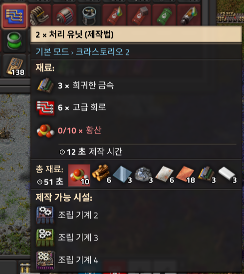 여튼 지금은 희귀한 금속이 필요하니까 희귀한 금속 제련공장을 만들어 보도록 하자.