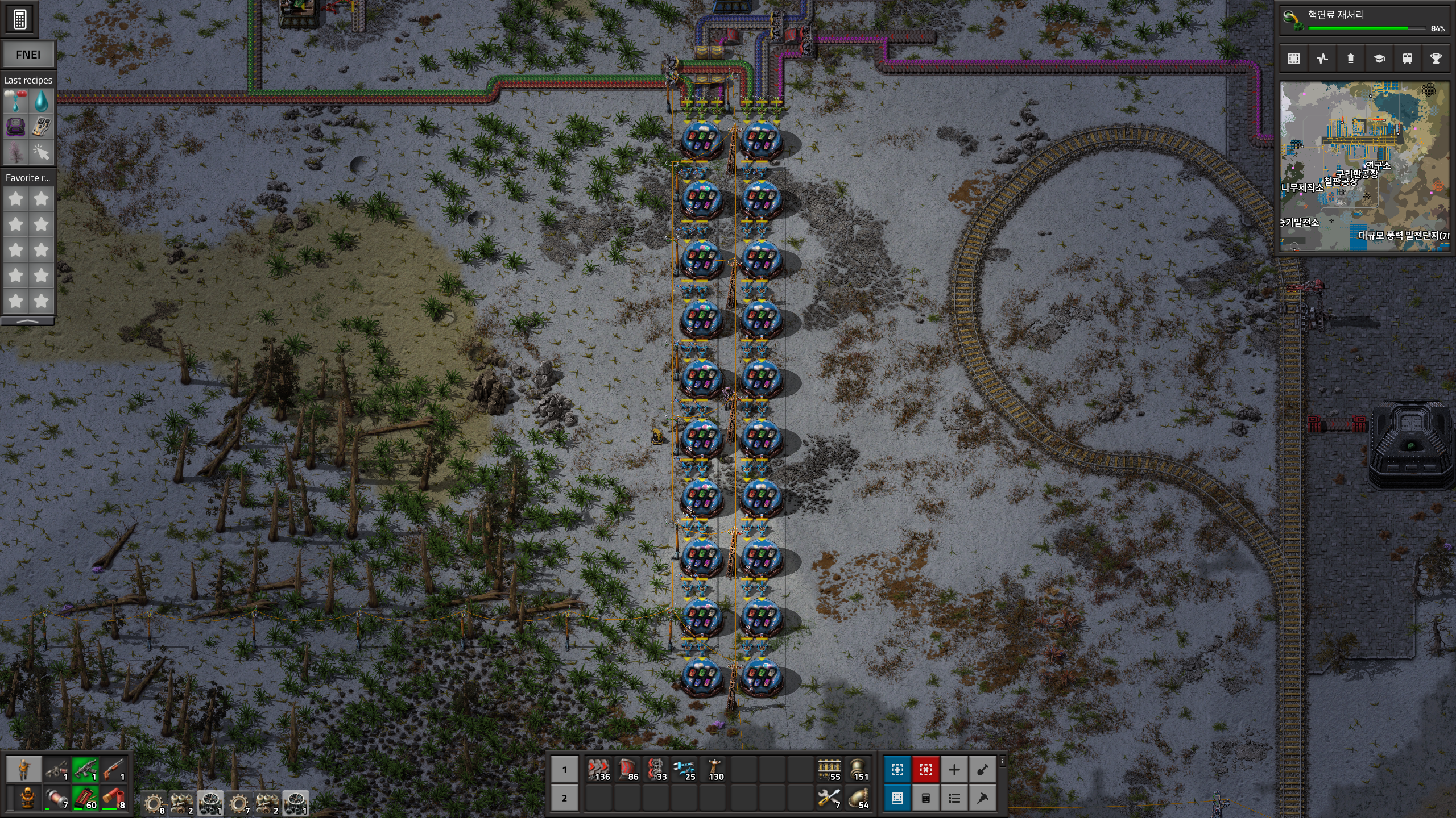 이제 해야할일은 우라늄 238을 메인허브쪽으로 옮기는 일인데 최근에 철도를 쓸일이 이래저래 많다보니 아무래도 철도도 자동화를 좀해야될 것 같다.