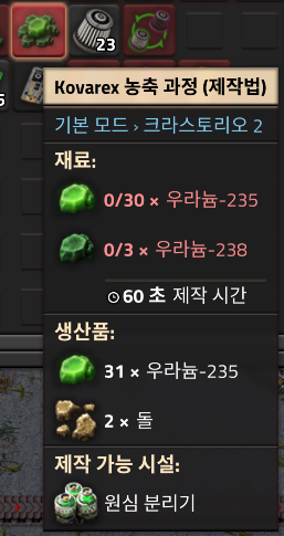 우라늄 30개를 촉매로 하여 우라늄 238 3개를 우라늄 235 1개로 만들수가 있다.