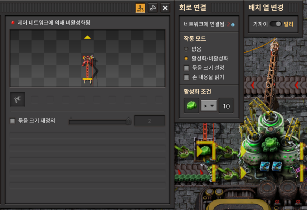 그리고 긴팔투입기와 상자를 연결하여 상자안의 우라늄235가 10개 이상 쌓이게 되면 동작하는것으로 변경했다.