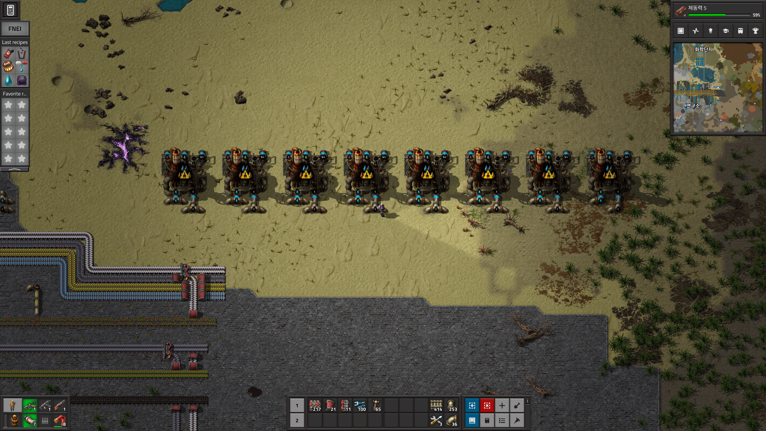 처리유닛은 8개로 양호한데, 저밀도구조물과 로켓연료가 각각 27개, 16개씩 공장이 들어가서 공장부지를 조금 크게 잡아야 될 것 같다.