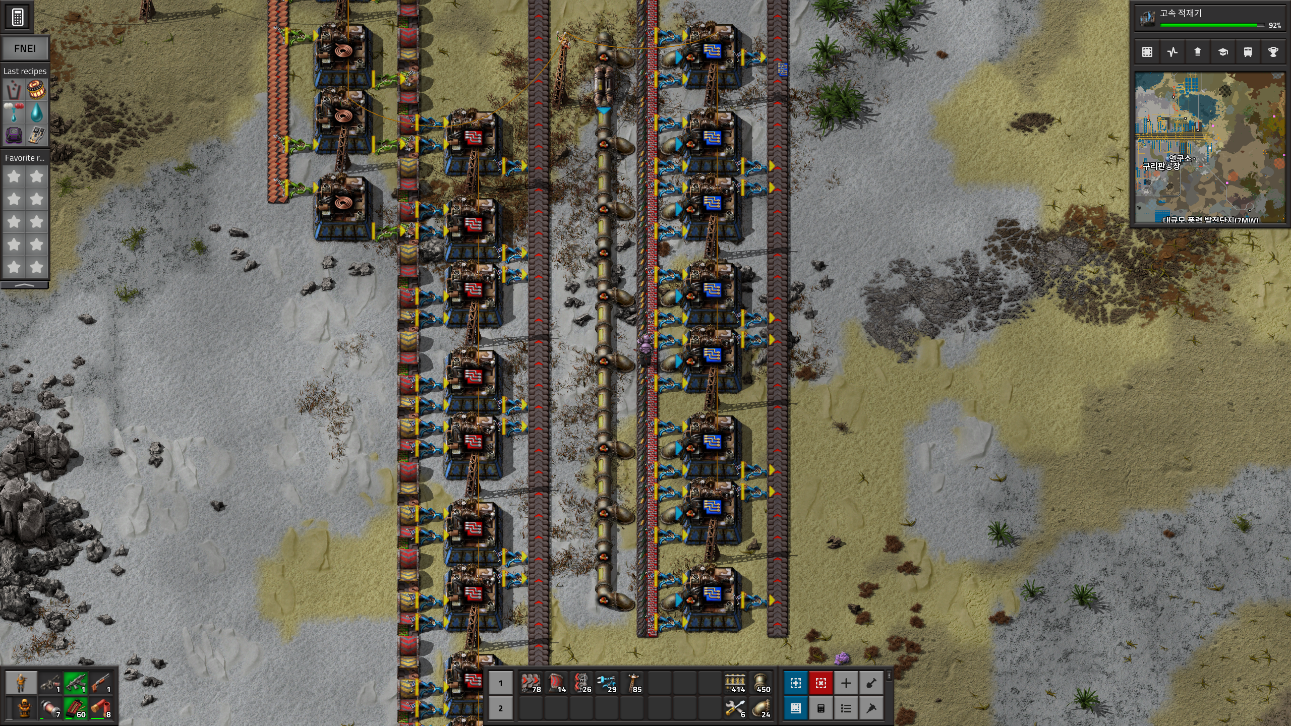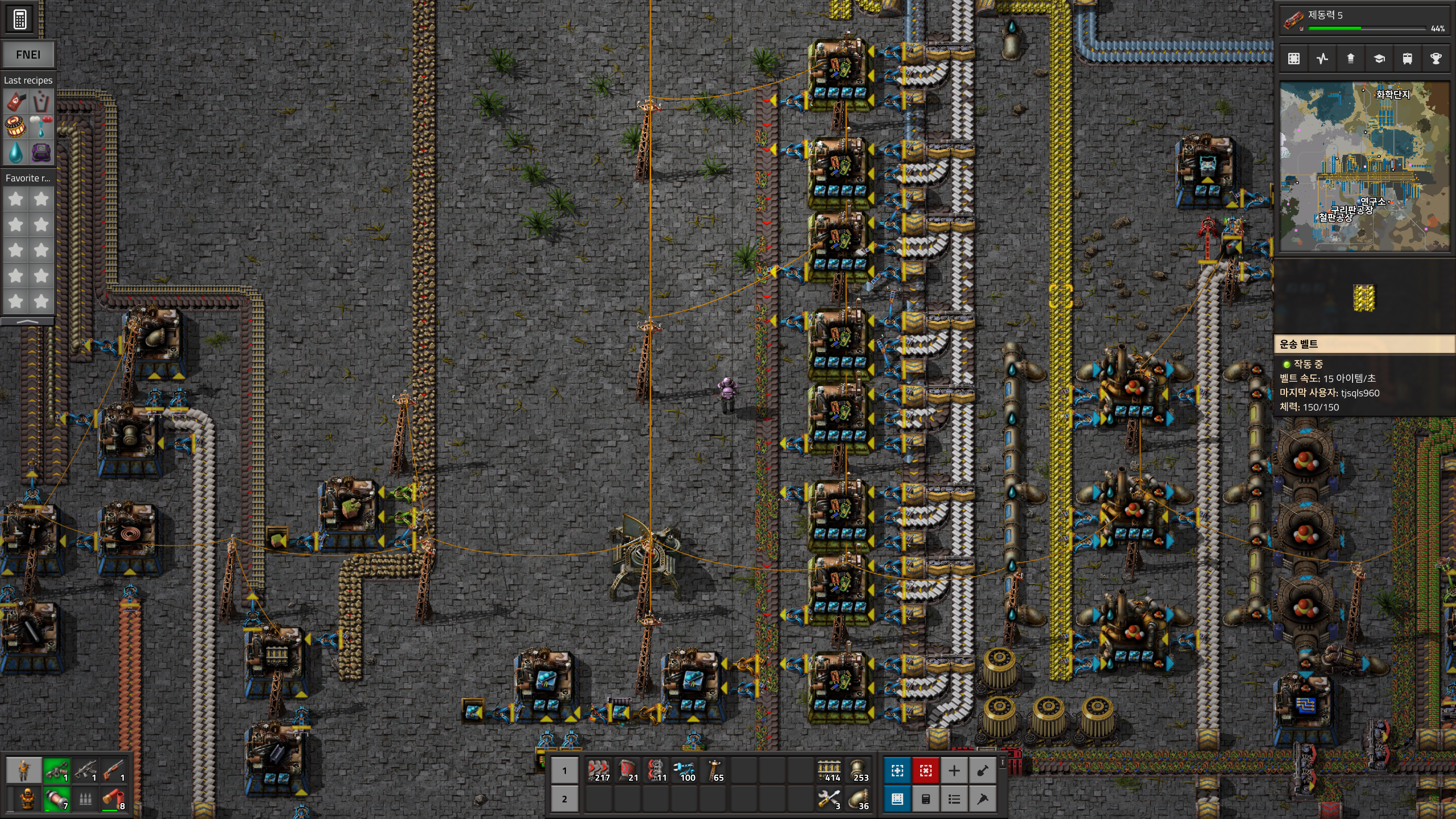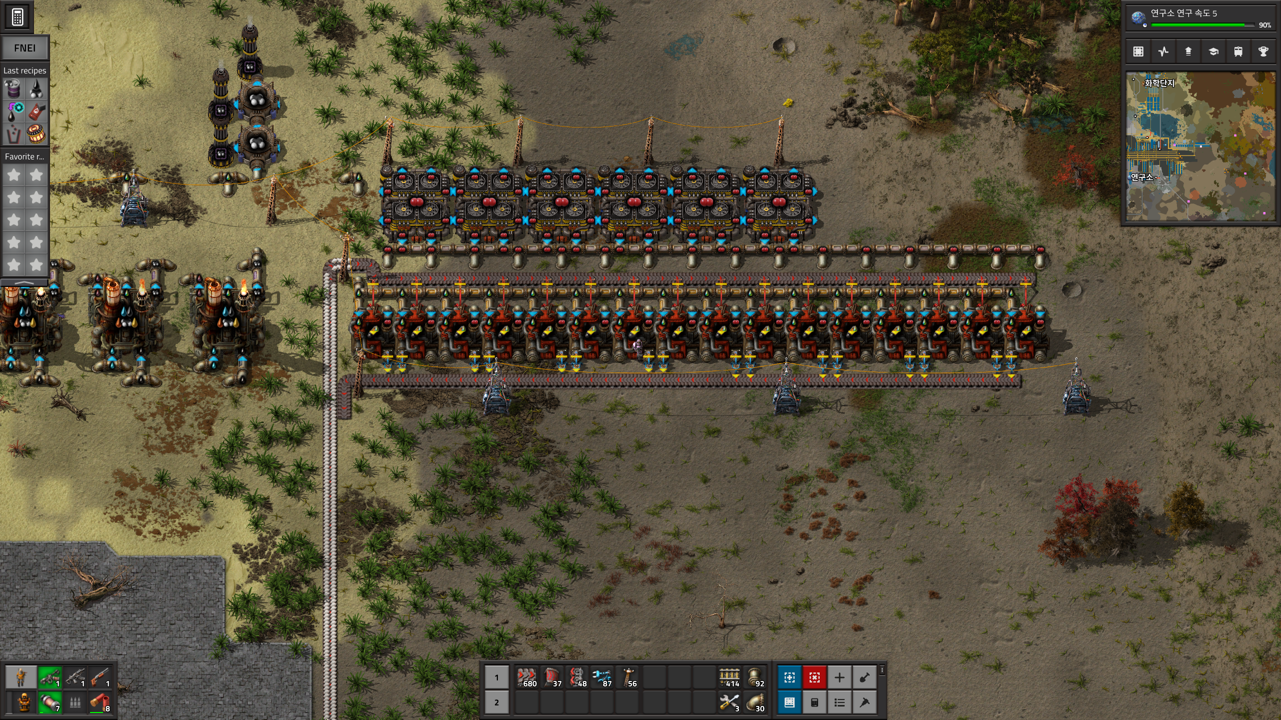 Helmod에서는 공장이 8개가 필요하다고 했는데, 어짜피 앞으로도 계속 쓸것 같아서 그냥 넉넉하게 2배수로 16개 공장을 지었다.