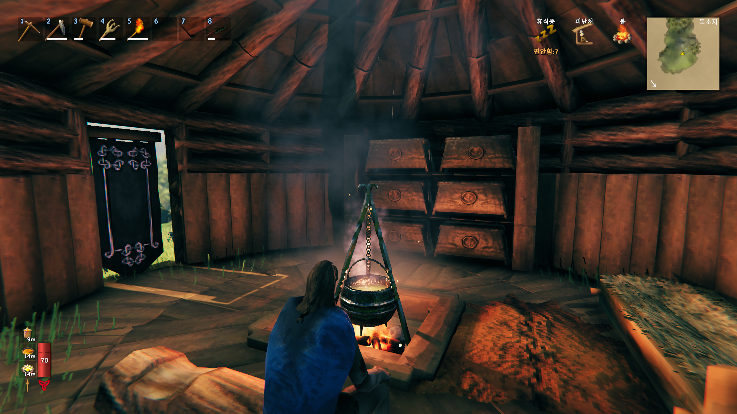 오늘은 발헤임에서 둥근 통나무집을 건축해볼 예정이다.